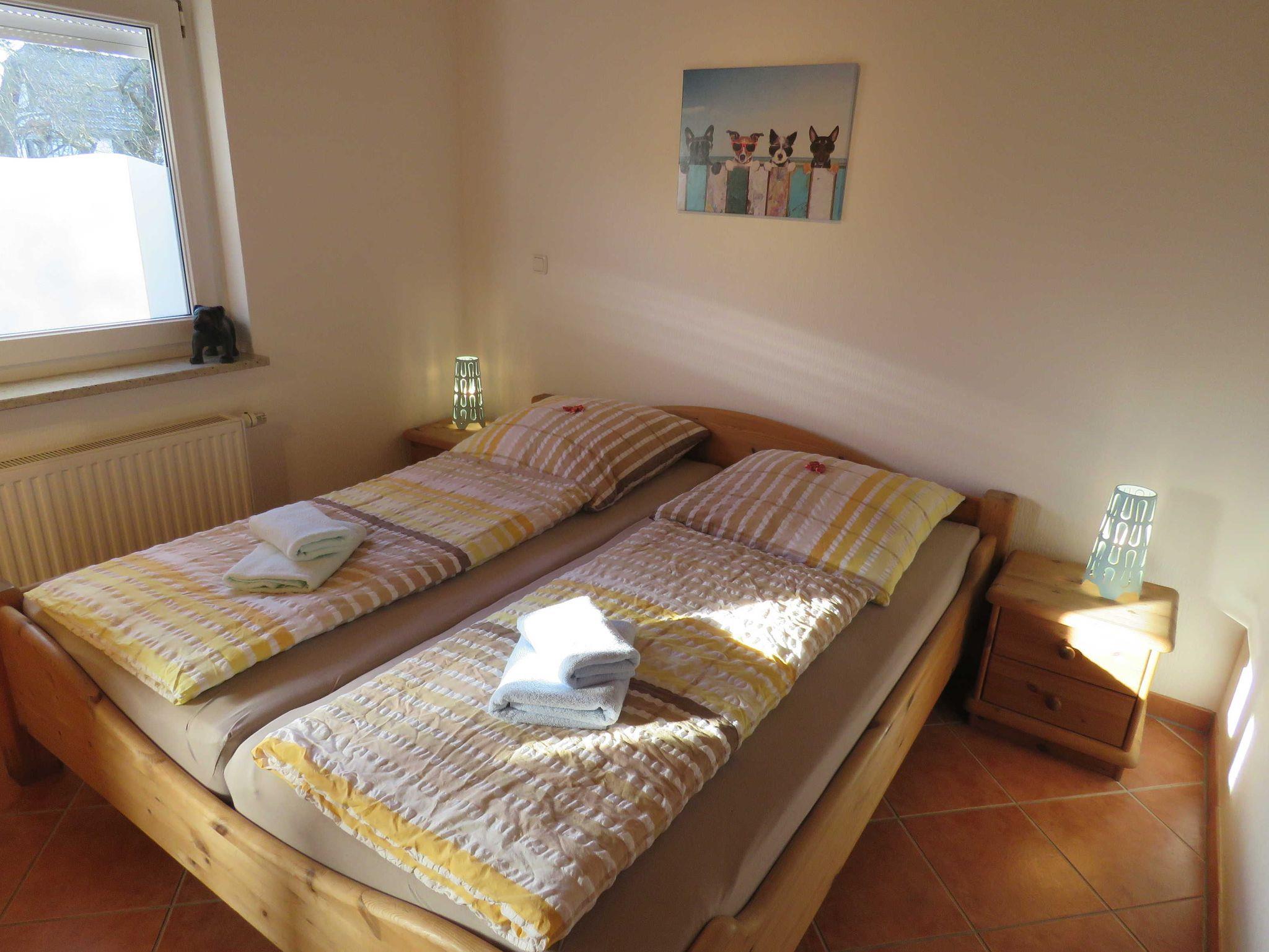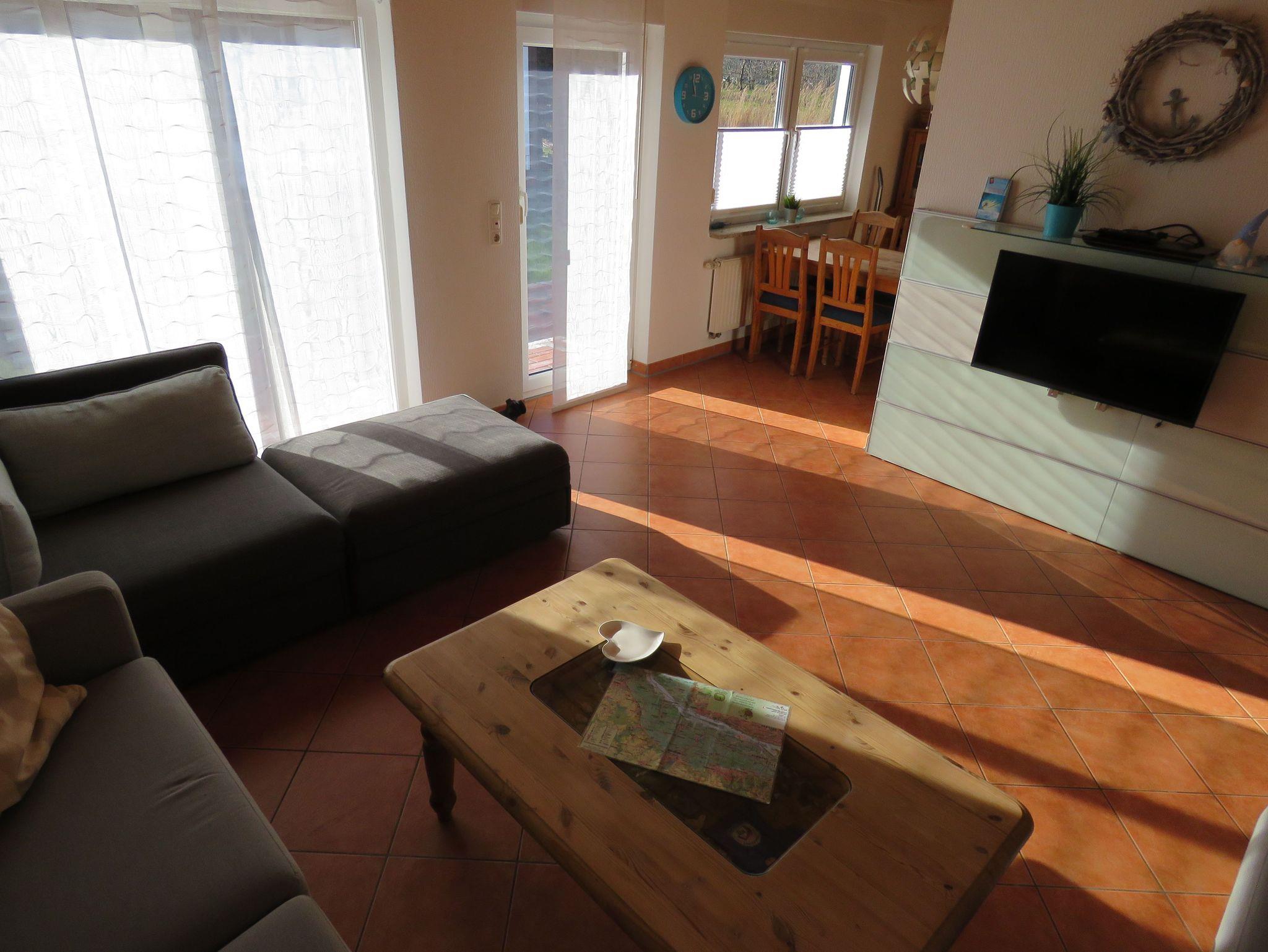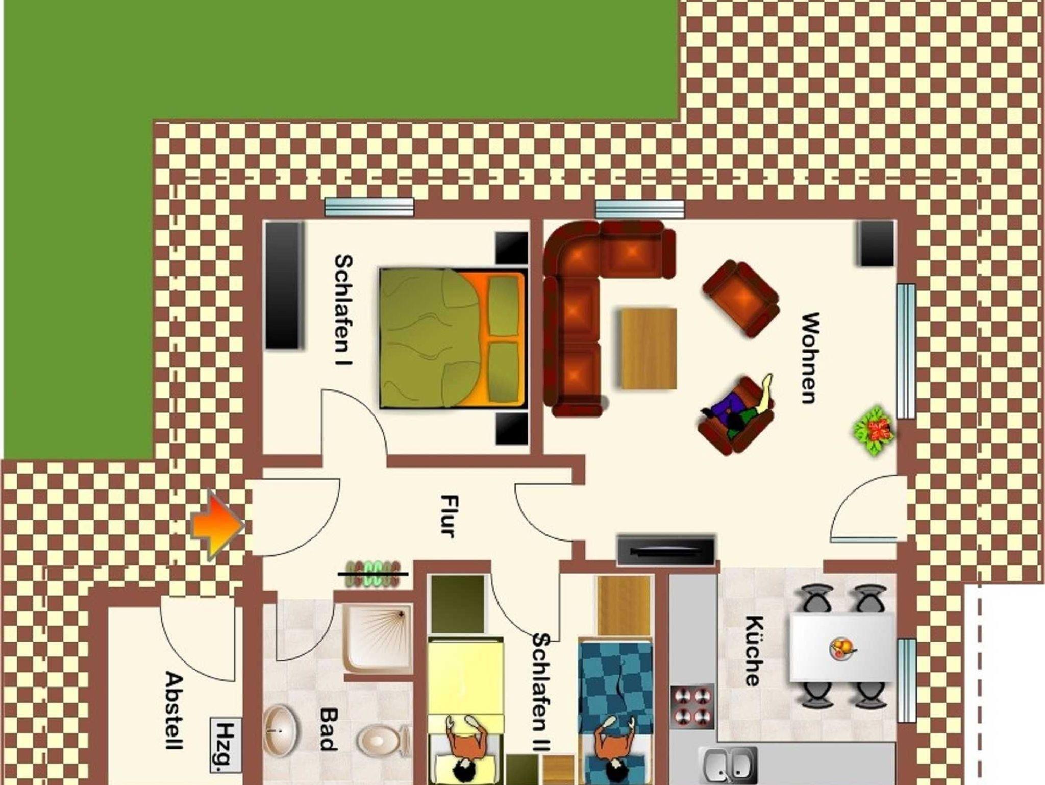 Das massiv errichtete, ebenerdige Ferienhaus 319, vom Typ Kogge, befindet sich im absolut autofreien Teil unseres schönen Feriendorfes - ruhige Randlage mit Blick auf die Wettern und einen alten Obsthof. Das Haus verfügt über ca. 60 m² Wohn-/Nutzfläche, kann mit bis zu 6 Personen (+1 Kleinkind im Kinderreisebett) belegt werden, das Grundstück ist eingezäunt. Das Ferienhaus bietet Ihnen neben einem Schlafraum mit einem Doppelbett, einem Schlafraum mit 2 Doppelstock-/Etagenbetten, einem Badezimmer (Dusche / WC) und einem Abstellraum ein geräumiges Wohnzimmer mit offener Küche (4-Platten-Herd/Backofen, Kühlschrank/Gefrierfach, Mikrowelle, Spülmaschine) und Essplatz. Zugang zur möblierten Terrasse vom Wohnzimmer. Für den Gepäcktransport steht im Abstellraum ein Kofferwagen zur Verfügung. Nichtraucherhaus - kostenloses WLAN - Haustiere erlaubt - Brötchenservice von Ostern bis Oktober!
