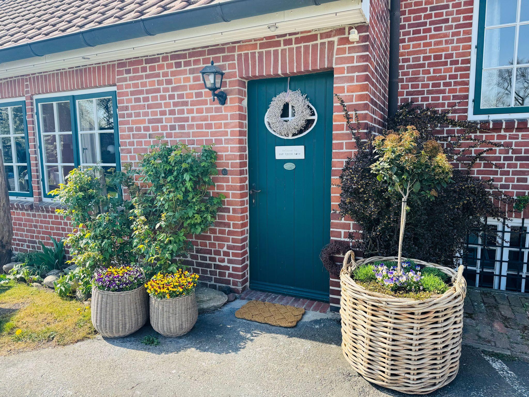 Wir laden Sie zu entspannten Urlaubstagen in unseren liebevoll eingerichteten Ferienwohnungen und Doppelzimmern ein in unserem wunderschönem Altländer Bauernhaus. Das Haus wurde 1908 von zwei Architekten aus Bremen entworfen, nachdem das alte Bauernhaus abgebrannt war. Das neue Gebäude sollte zur Region passen, aber auch ein paar Besonderheiten haben. Man entschied sich damals für eine Veranda mit Haupteingang an der Seite und dahinter eine großzügige Empfangshalle mit einer Galerie. Die sogenannte Brauttür im Giebel ist nur ein Schmuckstück und war nie begehbar.