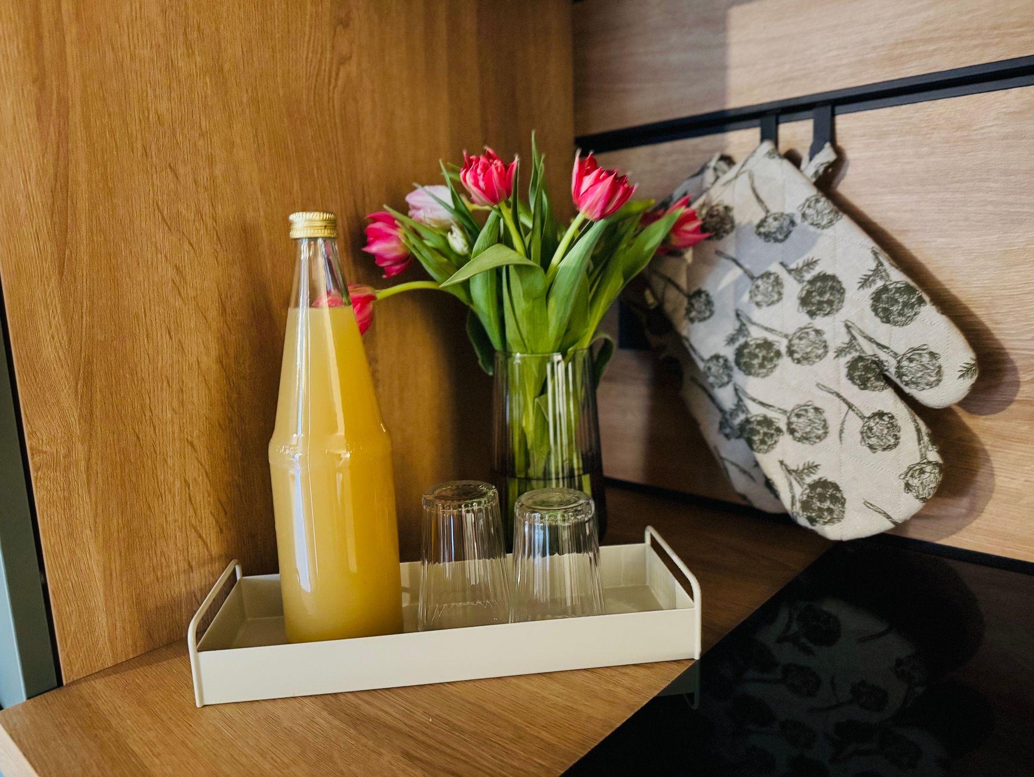 Diese Ferienwohnung Apfelblüte (40 qm) liegt im Erdgeschoss des Bauernhauses und ist mit bis zu 3 Personen zu bewohnen. Sie unterteilt sich in den größeren Raum mit einem komfortablen Doppelbett, einer kleinen Sitzecke und TV. Daneben liegt das kleinere Zimmer mit einem Einzelbett und einer gemütlichen Sitzecke mit ausziehbarer Schlafcouch! Vor den beiden Räumen befindet sich die modern ausgestattete Küchenzeile inklusive Geschirrspülmaschine und integrierter Sitzecke mit Barhockern! Von dem Flur aus gelangt man in das helle, moderne freundliche Bad. Die gesamte Wohnung verfügt über eine Fußbodenerwärmung!