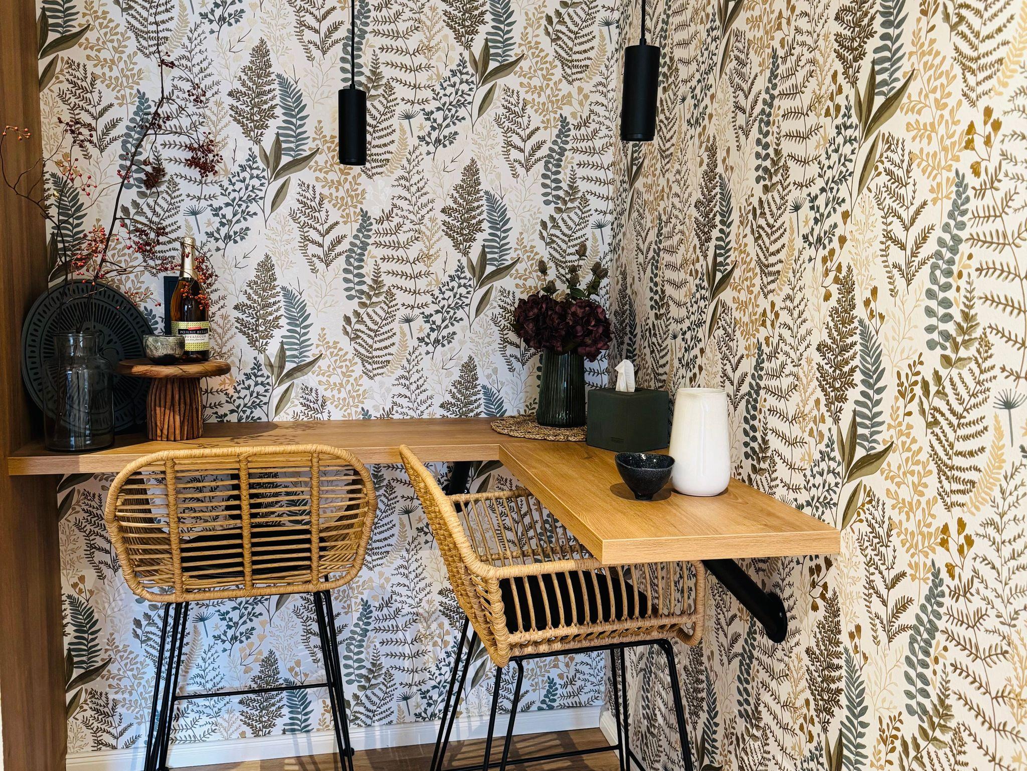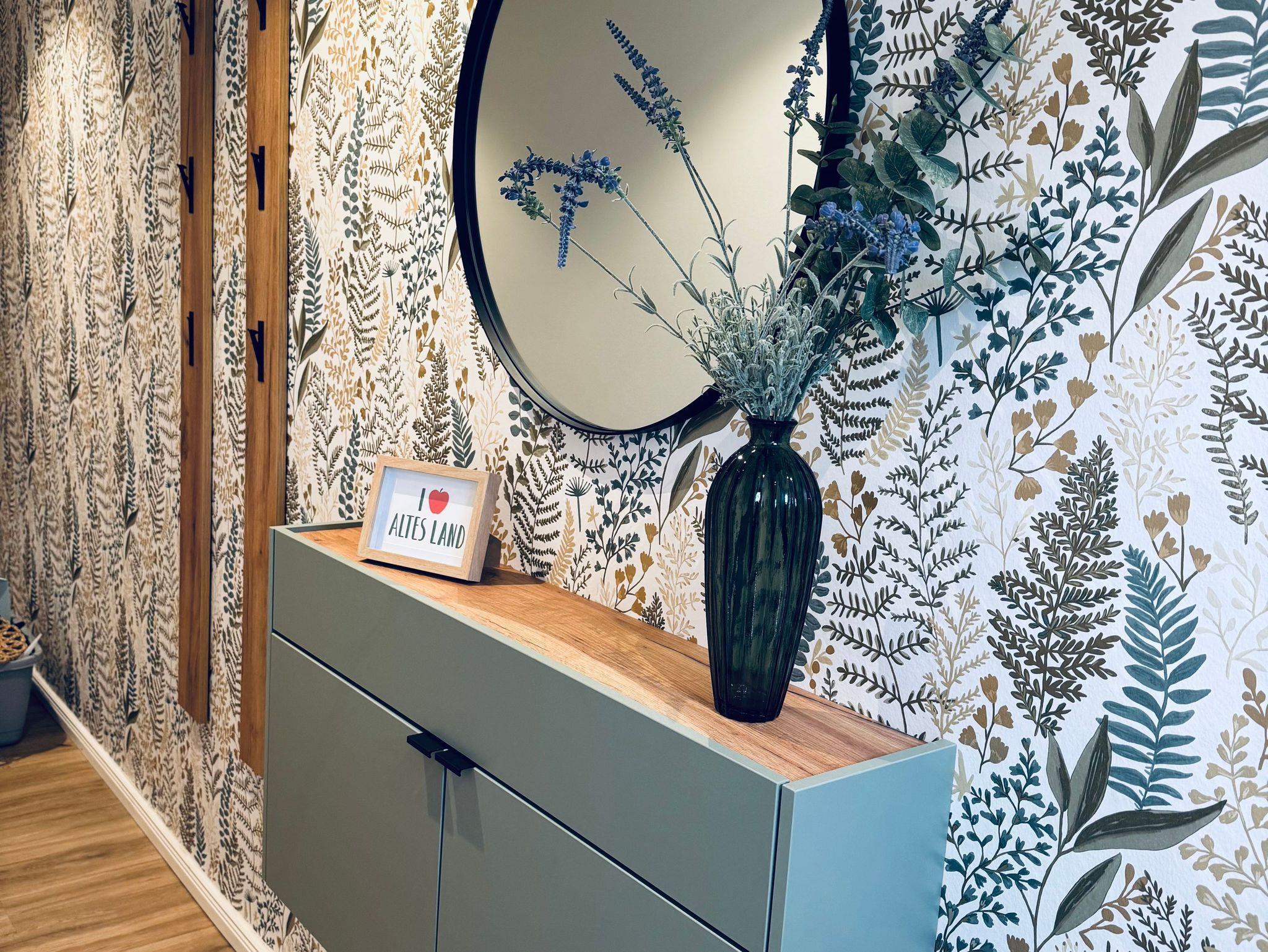 Vor den beiden Räumen befindet sich die wunderschöne, voll ausgestattete Küche mit einem integriertem Stehtisch und Barhockern sowie ein kleines, freundliches helles Bad. im Flur befindet sich ein Schuhschrank und die Garderobe.