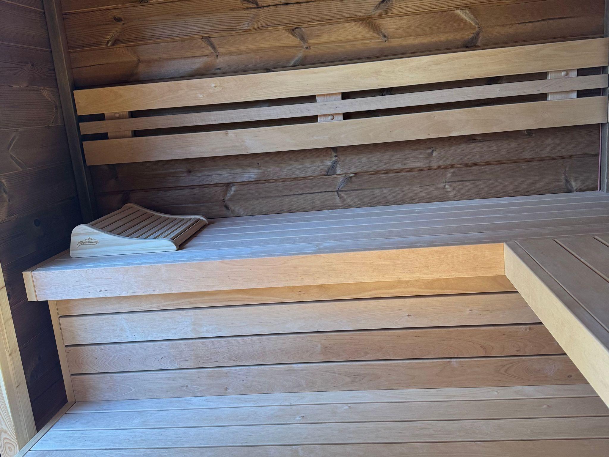 Ergänzt wird der Wellnessbereich durch einen Jacuzzi im Garten sowie einen gemütlichen Ruheraum mit Liegen, in dem Sie nach dem Saunagang entspannen und zur Ruhe kommen können.
