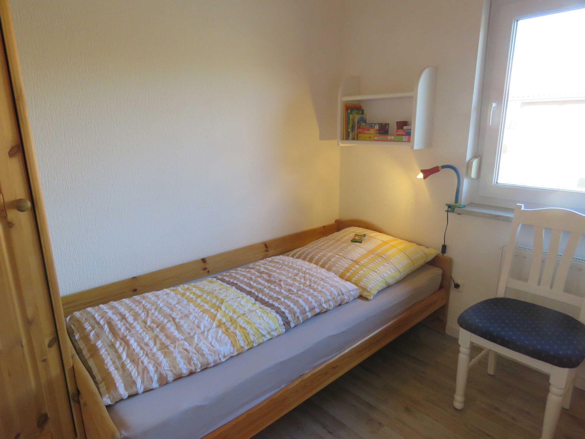 Das massiv errichtete, ebenerdige Ferienhaus 321, vom Typ Kogge, befindet sich im absolut autofreien Teil unseres schönen Feriendorfes - ruhige Randlage mit Blick auf die Wettern und einen alten Obsthof. Das Haus verfügt über ca. 60 m² Wohn-/Nutzfläche und kann mit bis zu 4 Personen (+1 Kleinkind im Kinderreisebett) belegt werden, das Grundstück ist eingezäunt. Das Ferienhaus bietet Ihnen neben einem Schlafraum mit einem Doppelbett, einem Schlafraum mit 2 Einzelbetten, einem Badezimmer (Dusche / WC) und einem Abstellraum (mit Waschmaschine und Trockner) ein geräumiges Wohnzimmer mit offener Küche (Ceran-Kochfeld/Backofen, Kühlschrank/Gefrierfach, Mikrowelle, Spülmaschine) und Essplatz. Zugang zur möblierten Terrasse vom Wohnzimmer. Für den Gepäcktransport steht im Abstellraum oder dem zum Haus gehörenden Gartenhäuschen, in dem man seine Fahrräder unterstellen kann, ein Kofferwagen zur Verfügung. Das Haus verfügt über 2 fest zugewiesene Parkplätze (der 2. Parkplatz ist kostenpflichtig), wovon sich einer unter einem Carport befindet. Nichtraucherhaus - kostenloses WLAN - Haustiere erlaubt - Brötchenservice von Ostern bis Oktober!