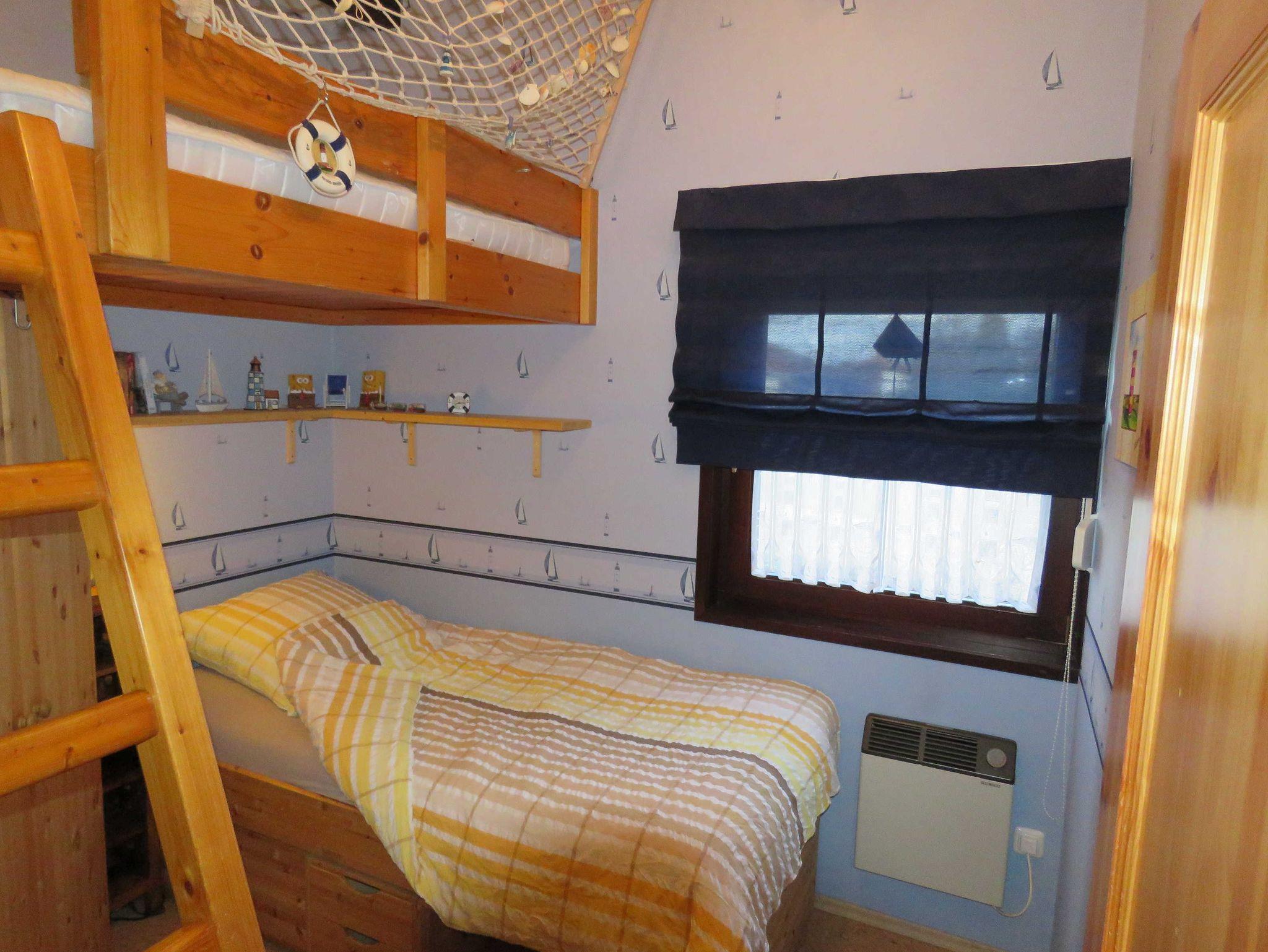 Unser gemütliches, ebenerdiges Ferienhaus 101, vom Typ Scout 48, bietet Ihnen eine Wohn-/Nutzfläche von ca. 48 m² und kann mit bis zu 4 Personen (+ 1 Kleinkind im Kinderreisebett) belegt werden. Das Haus verfügt über einen Schlafraum mit einem Doppelbett, einen Schlafraum mit einem Einzelbett und einem eingebauten Hochbett, ein Badezimmer (Dusche/WC) und ein Wohnzimmer mit angrenzender Küche (Ceran-Kochfeld/Backofen, Kühlschrank/Gefrierfach und Spülmaschine) mit Essplatz. Zugang zur möblierten Terrasse vom Wohnzimmer. Das zum Haus gehörende große Gartenhaus steht Ihnen als Abstellraum, auch zur Unterbringung von Fahrrädern, zur Verfügung. Nichtraucherhaus - kostenloses WLAN - Haustiere erlaubt - Brötchenservice von Ostern bis Oktober!