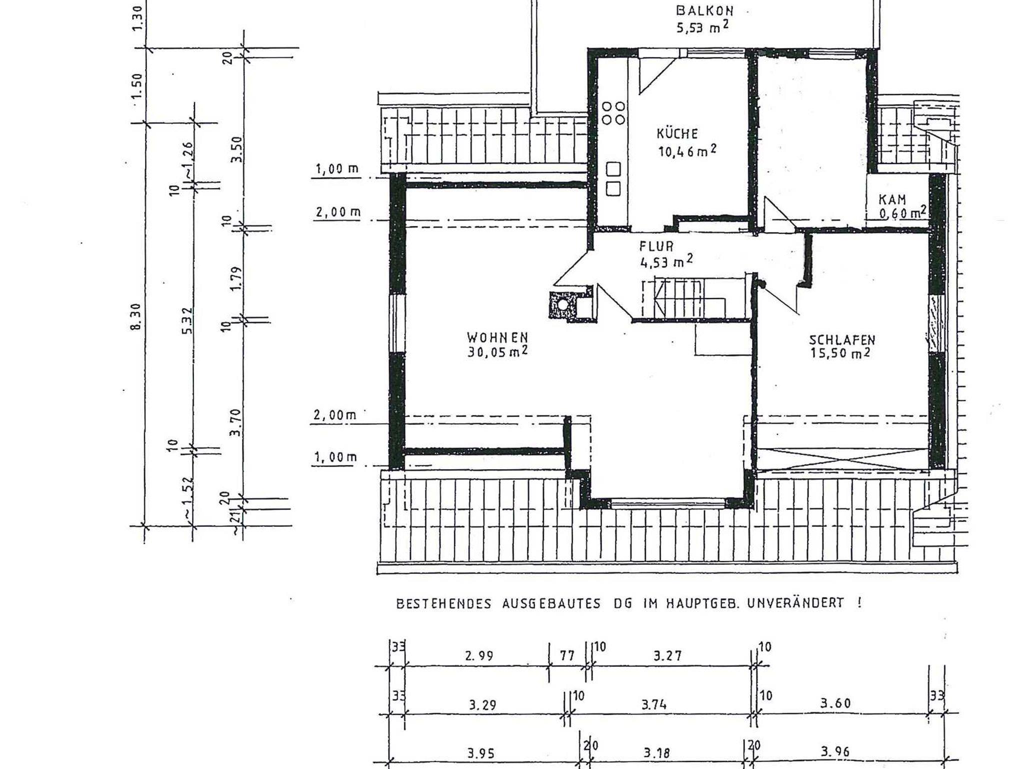 Die Wohnung liegt im Dachgeschoss mit Blick auf den Deich. Von dem Balkon blickt man auf Obsthöfe und die Mühle. Hier scheint den ganzen Tag die Sonne, wenn mal nicht, so sorgt das Dach für ein angenehmes Verweilen.