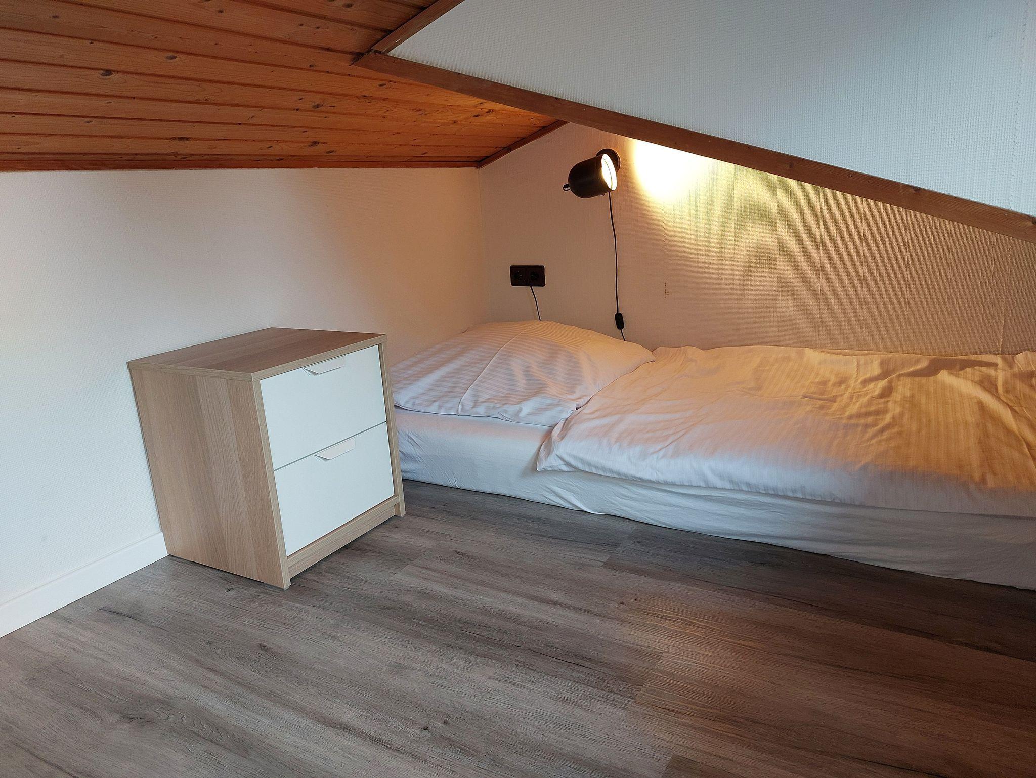 Die Koje unterm Dach bietet 2 Schlafgelegenheiten (Matratzen) und eignet sich für größere Kinder.