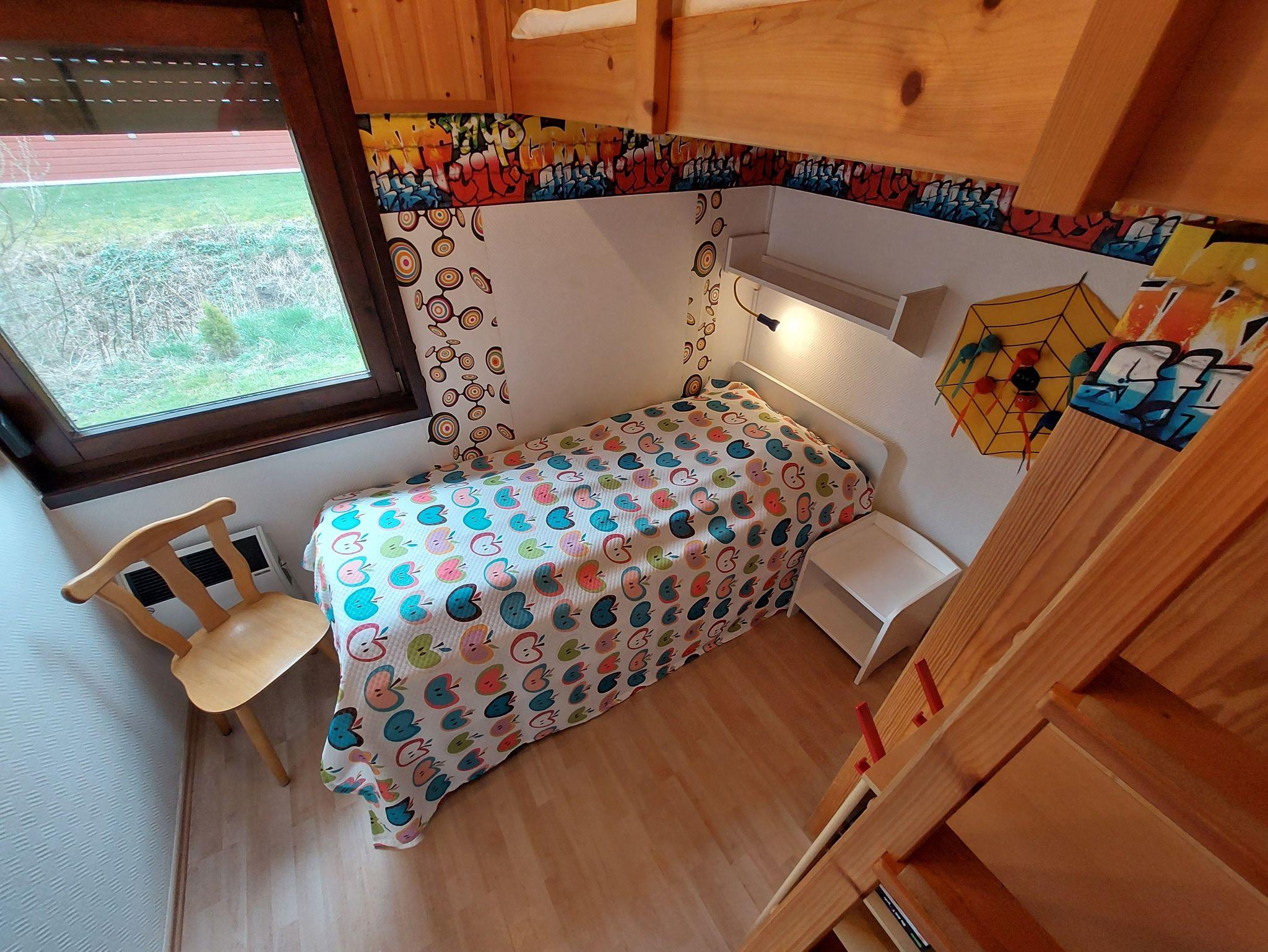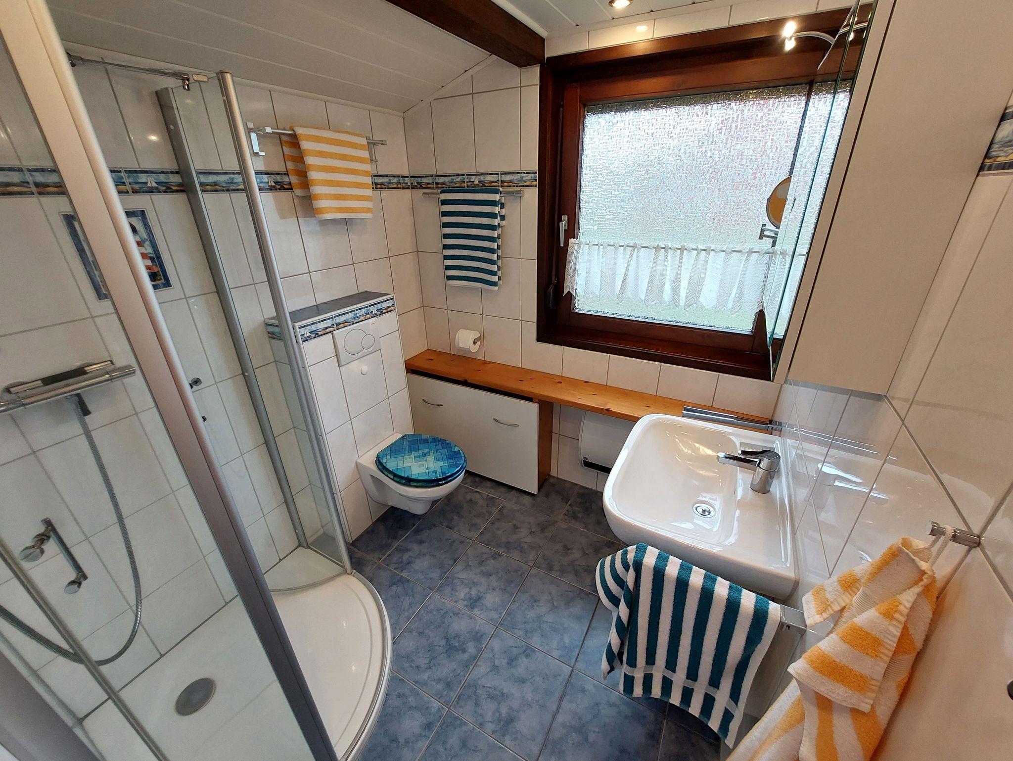 Unser gemütliches, ebenerdiges Ferienhaus 55, vom Typ Scout 48, kann bei einer Wohn-/Nutzfläche von ca. 48 m² mit bis zu 5 Personen (+ 1 Kleinkind im Kinderreisebett) belegt werden. Das Haus verfügt über einen Schlafraum mit zwei Einzelbetten, einen Schlafraum mit einem Einzelbett und einem eingebauten Hochbett, ein Badezimmer (Dusche/WC), einen außenliegenden Abstellraum und ein Wohnzimmer (mit Schlafcouch) mit angrenzender Küche (Ceran-Kochfeld/Backofen, Kühlschrank/Gefrierfach und Mikrowelle) mit Essplatz. Zugang zur möblierten Terrasse vom Wohnzimmer. Nichtraucherhaus - kostenloses WLAN - Haustiere erlaubt - Brötchenservice von Ostern bis Oktober!