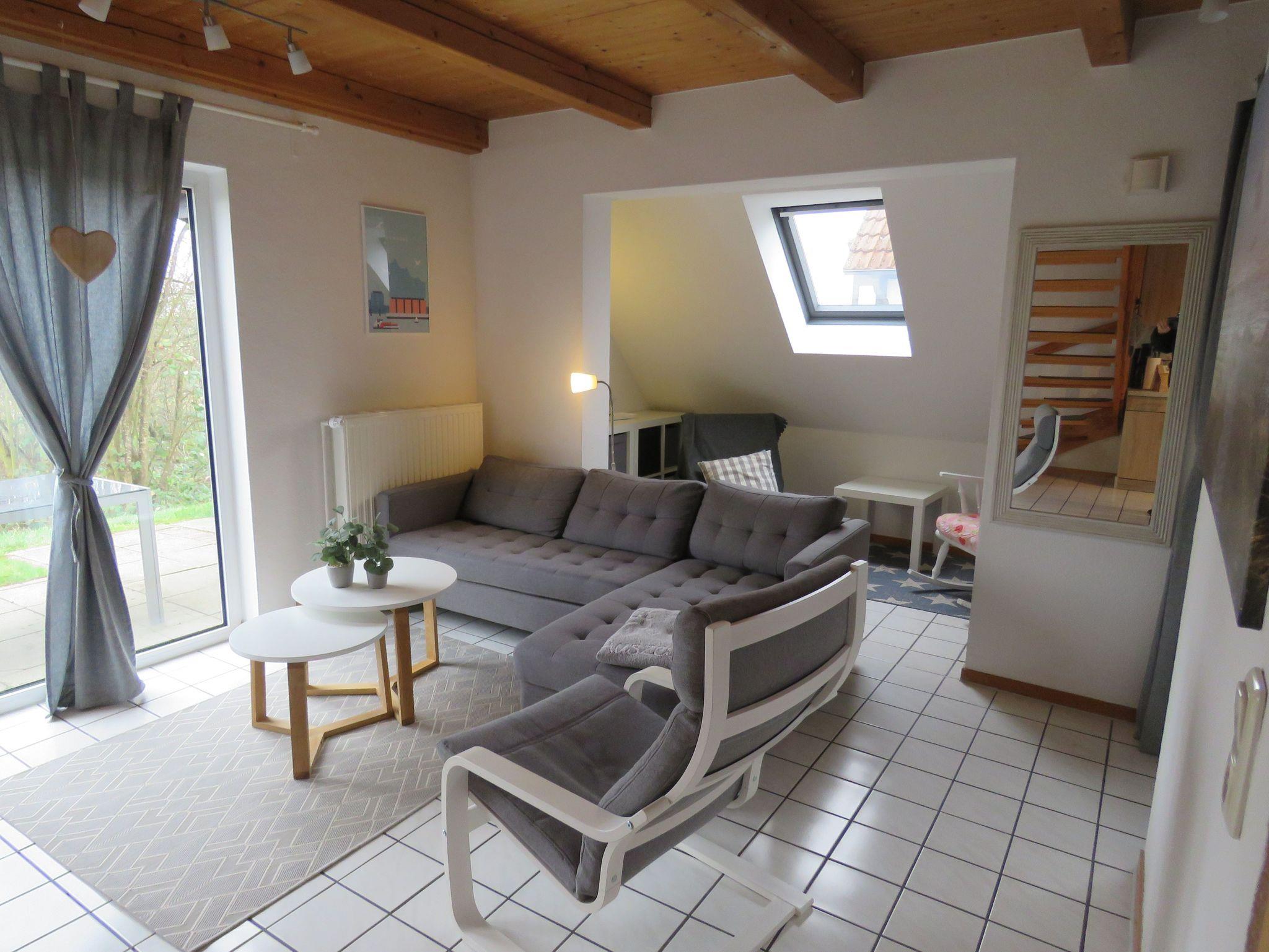 Die massiv errichteten Ferienhäuser vom Typ Scout 60 verfügen über ca. 60 m² Wohn-/Nutzfläche auf 2 Etagen und können mit bis zu 4 Personen (+ 1 Kleinkind im Kinderreisebett) belegt werden. Im Erdgeschoss befindet sich das Badezimmer (Dusche/WC), das Wohnzimmer mit angrenzender offener Küche mit Essplatz (Ceran-Kochfeld/Backofen - Kühlschrank/Gefrierfach, Mikrowelle und Spülmaschine). Zugang zur möblierten Terrasse vom Wohnzimmer und da, wo außenliegend, zum Abstellraum. Über die offene Treppe im Wohnbereich gelangt man zu den beiden Schlafräumen (ein Schlafraum mit einem Doppelbett und ein Schafraum mit zwei Einzelbetten) im Obergeschoss. Als Abstellmöglichkeit stehen entweder ein außenliegender Abstellraum oder ein Gartenhäuschen zur Verfügung. Nichtraucherhäuser - kostenloses WLAN - Haustiere erlaubt - Brötchenservice von Ostern bis Oktober!