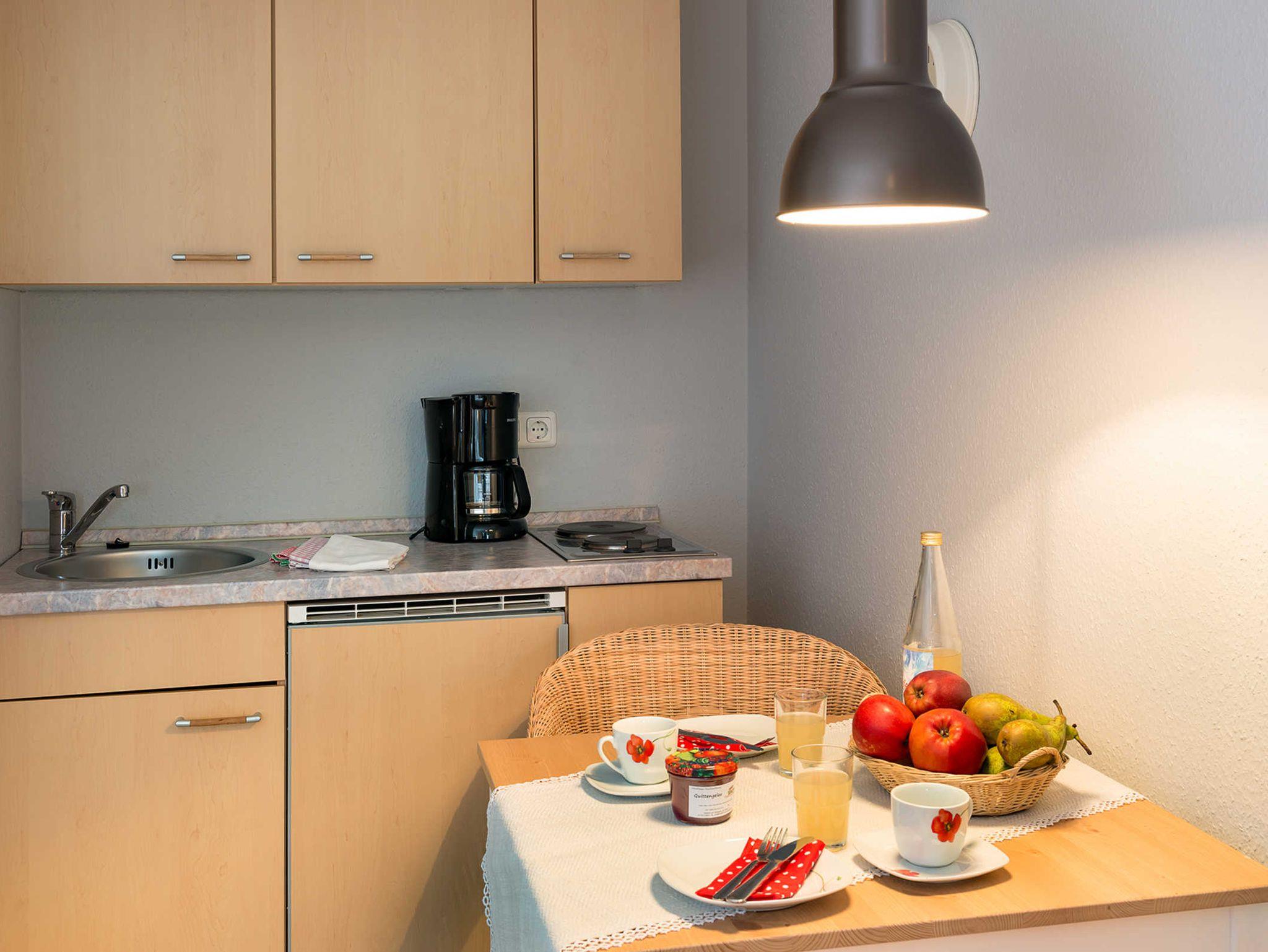 Die 25qm großen Appartements (geeignet für 2 Personen) wurden im April 2016 renoviert und liegen im Parterre des 300 Jahre alten Fachwerkbauernhauses. Sie verfügen über ein Wohn-Schlafzimmer mit Doppelbett, einer Sitzecke mit Sessel und TV, einer Kochnische und einem separaten Bad mit Dusche und WC. Hunde auf Anfrage.