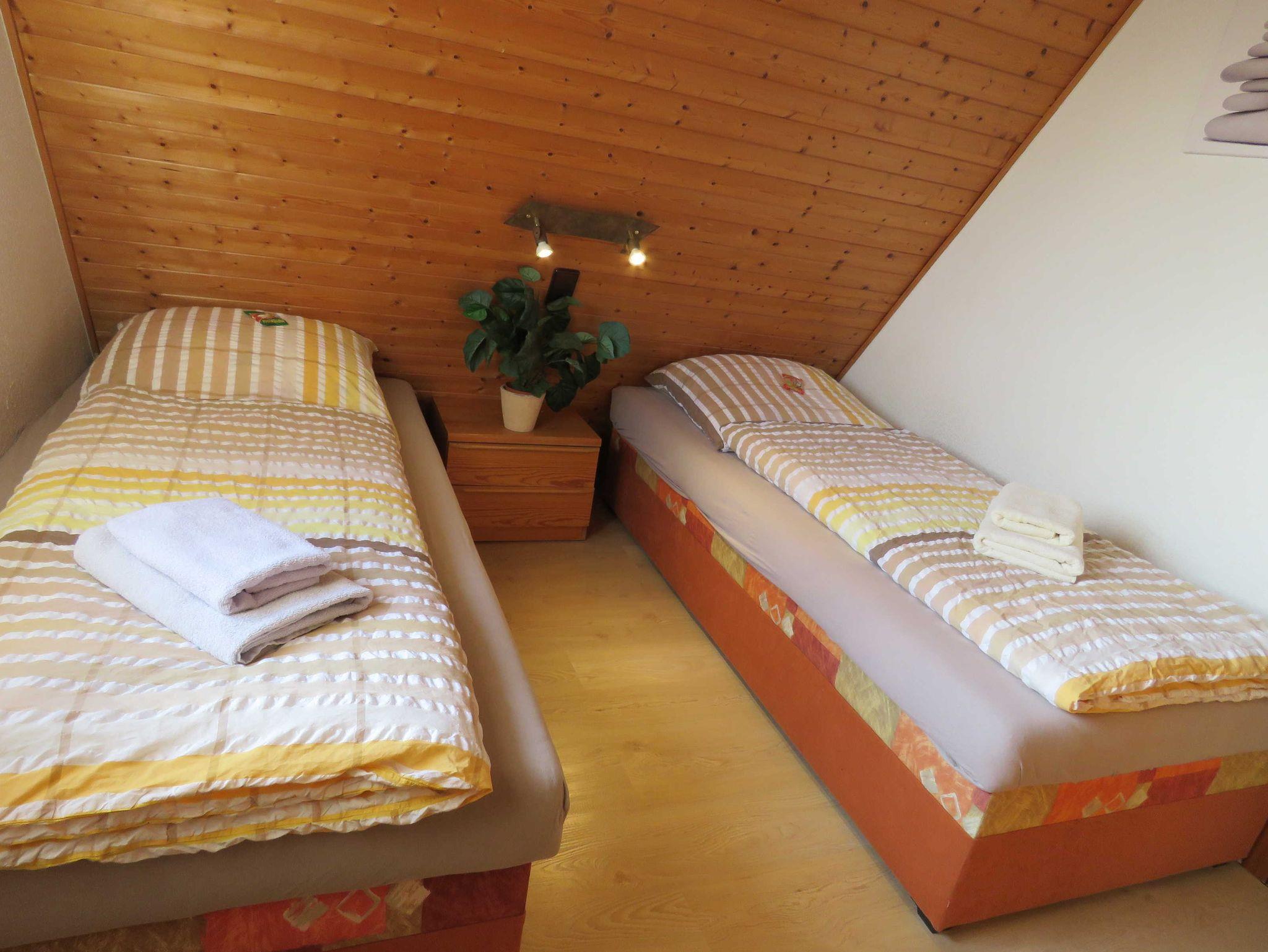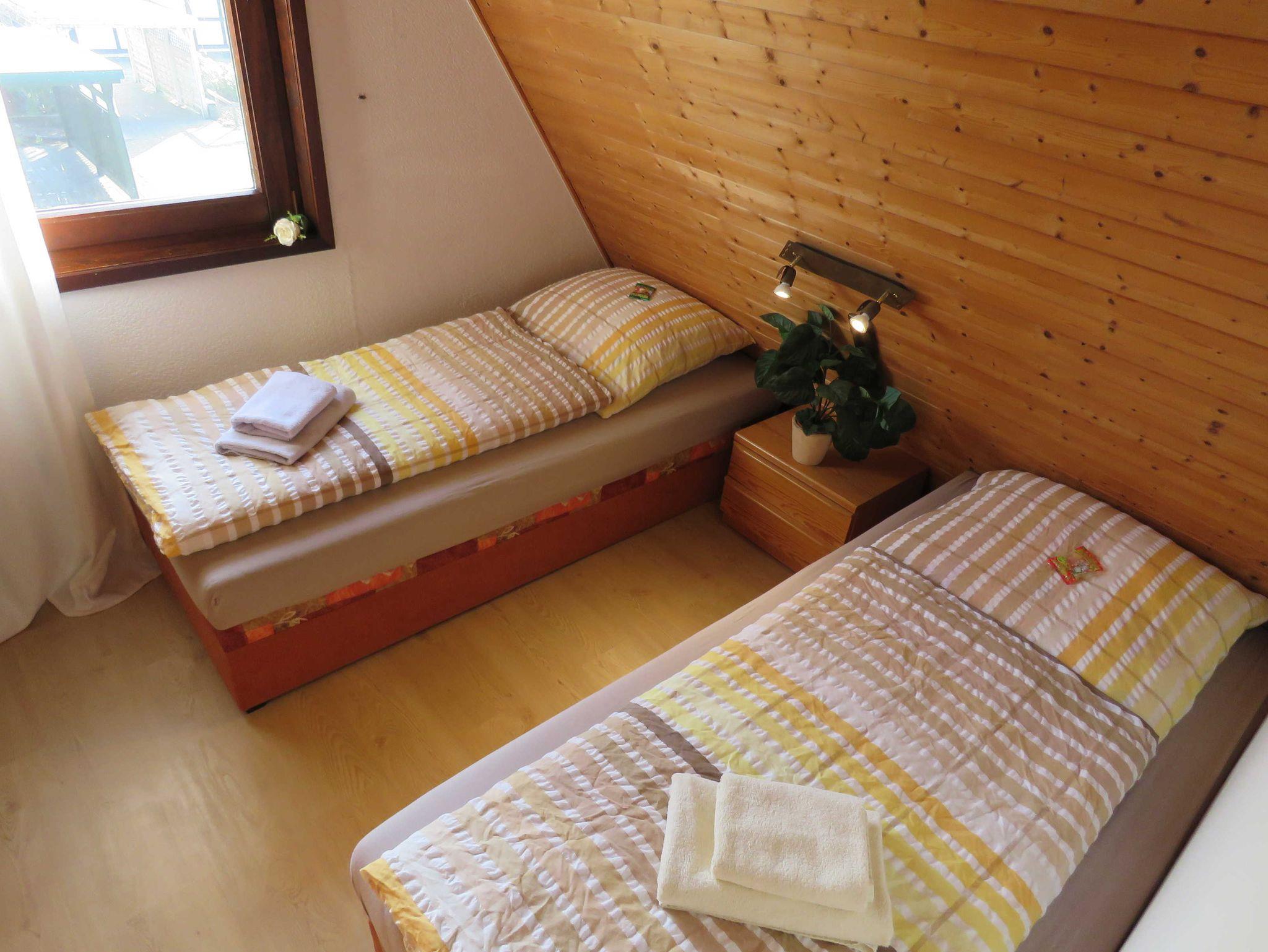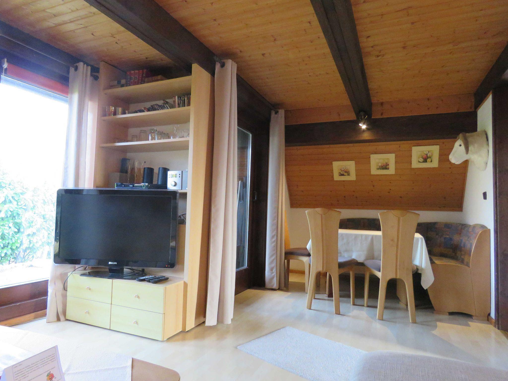 Die Nurdach-Ferienhäuser vom Typ Lederstrumpf verfügen über eine Wohn-/Nutzfläche von ca. 66 m² und können mit bis zu 6 Personen belegt werden (+ 1 Kleinkind im Kinderreisebett). Im Erdgeschoss befindet sich das Badezimmer (Dusche/WC), der innenliegende Abstellraum, die Küche (Ceran-Kochfeld/Backofen,Kühlschrank/Gefrierfach, Mikrowelle und Spülmaschine) und der Wohnraum (Zugang zur möblierten Terrasse) mit Schlafcouch und angrenzender Essecke. Im Obergeschoss befinden sich zwei Schlafräume mit jeweils zwei Einzelbetten. Nichtraucherhaus - kostenloses WLAN - Haustiere erlaubt - Brötchenservice von Ostern bis Oktober!