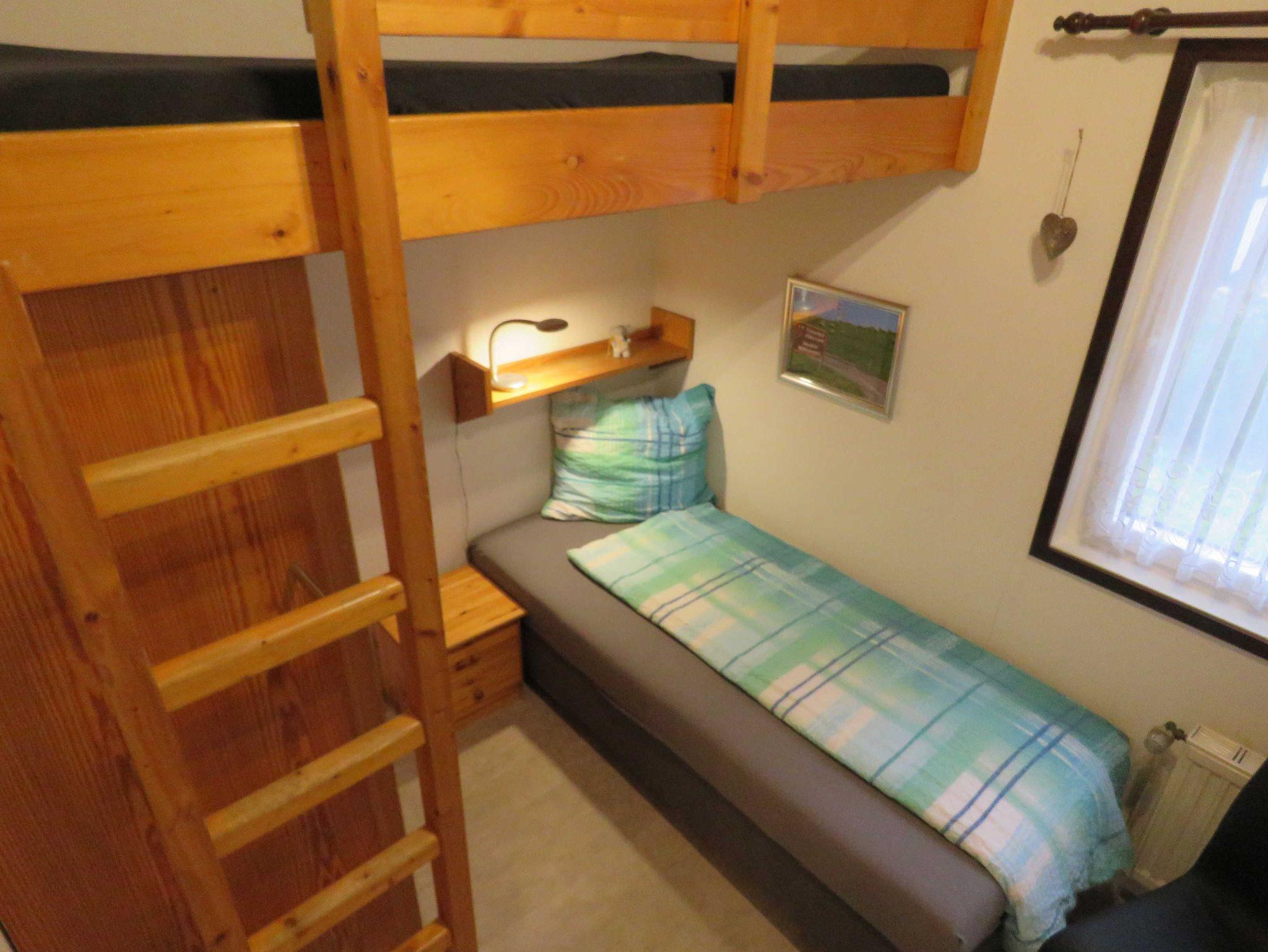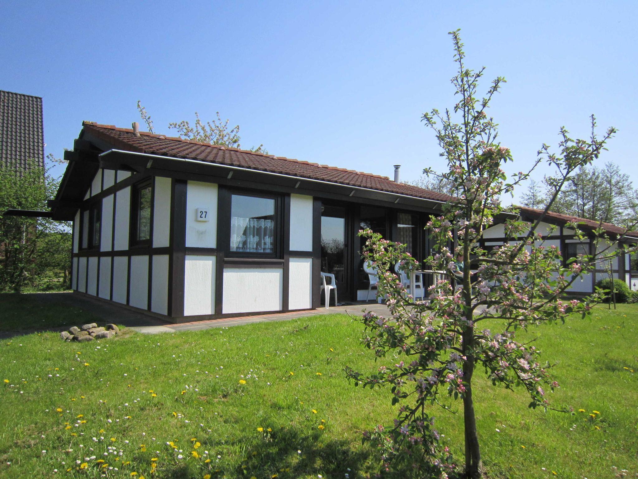 DUnser gemütliches Ferienhaus 27, vom Typ Scout 48, kann bei einer Wohn-/Nutzfläche von ca. 48 m² mit bis zu 5 Personen (+ 1 Kleinkind im Kinderreisebett) belegt werden. Das Haus verfügt über einen Schlafraum mit zwei Einzelbetten, einen Schlafraum mit einem Einzelbett und einem eingebauten Hochbett, ein Badezimmer (Dusche/WC), einen außenliegenden Abstellraum und ein Wohnzimmer (mit Schlafcouch) mit angrenzender Küche (Ceran-Kochfeld/Backofen, Kühlschrank/Gefrierfach, Mikrowelle und Spülmaschine) mit Essplatz. Zugang zur möblierten Terrasse vom Wohnzimmer. Nichtraucherhaus - kostenloses WLAN - Haustiere erlaubt - Brötchenservice von Ostern bis Oktober!