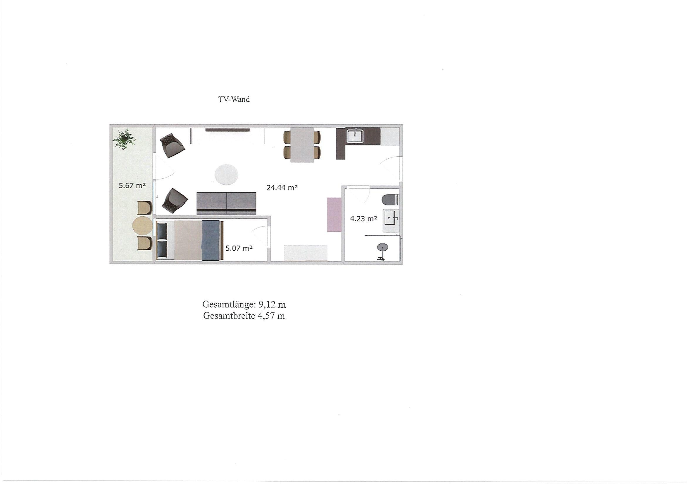 - Wohn-/Schlafzimmer, 22 m², 1 Person
