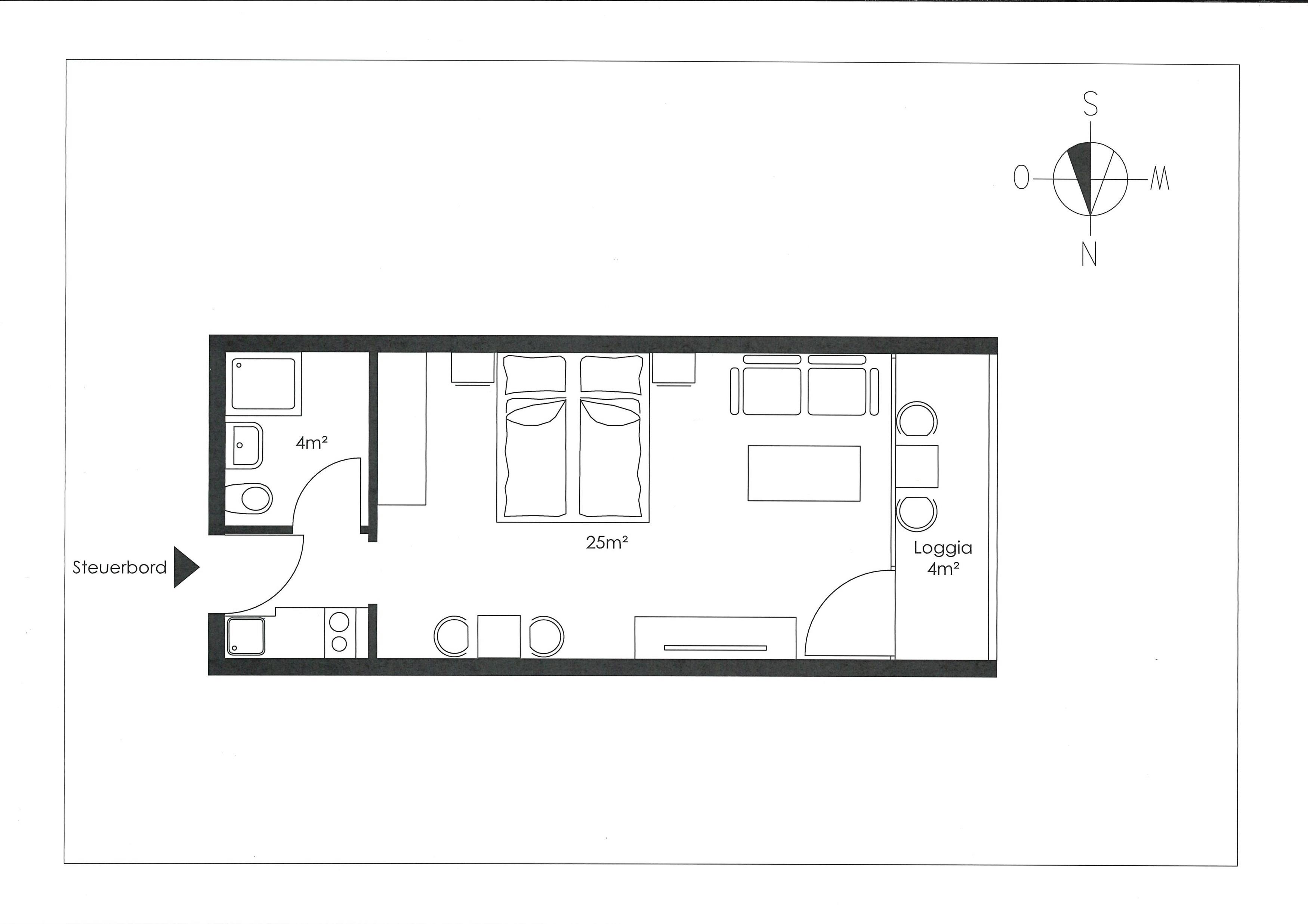 Unser 30 m² großes Appartement "Steuerbord" ist barrierearm mit dem Aufzug oder über das Treppenhaus zu erreichen. Es bietet einen gemütlichen Wohn und Schlafbereich, der mit einem Sofa, TV und einem bequemen Bett sowie einem kleinen Essbereich ausgestattet ist und bei schlechtem Wetter zum Verweilen einlädt. WLAN ist hier selbstverständlich ebenfalls verfügbar. Ebenso gibt es einen Balkon mit herrlichem Blick über die Probstei, auf dem Sie die angenehme Brise der nur 700 Meter entfernten Ostsee genießen können. Eine Pantryküche bietet die Möglichkeit, sich selbst zu versorgen und das Badezimmer mit Dusche und WC rundet die Einrichtung ab. Im Flur direkt gegenüber liegt unser zweites Appartement "Backbord", das ebenfalls buchbar ist.