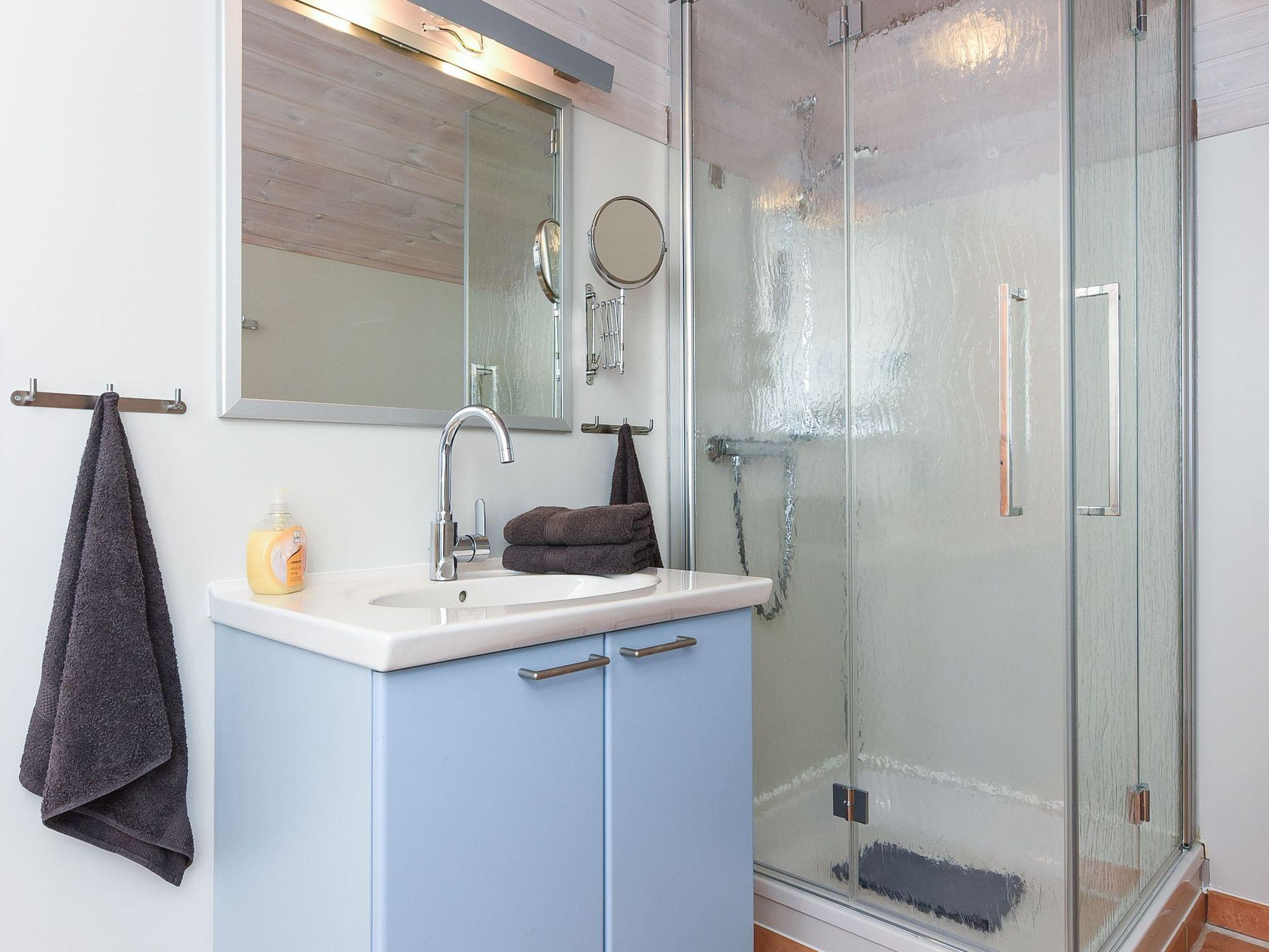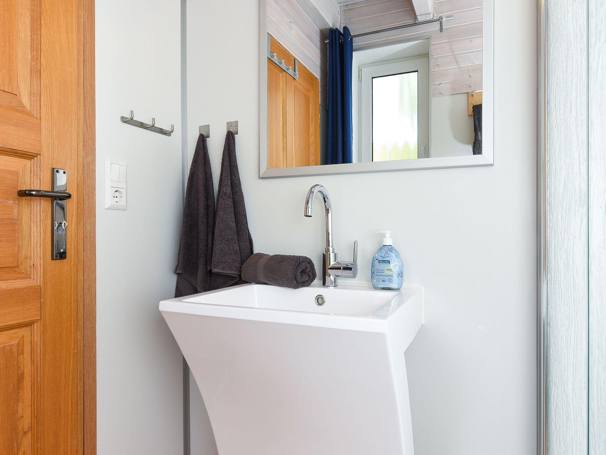 zweites Badezimmer mit Dusche, Waschtisch und WC