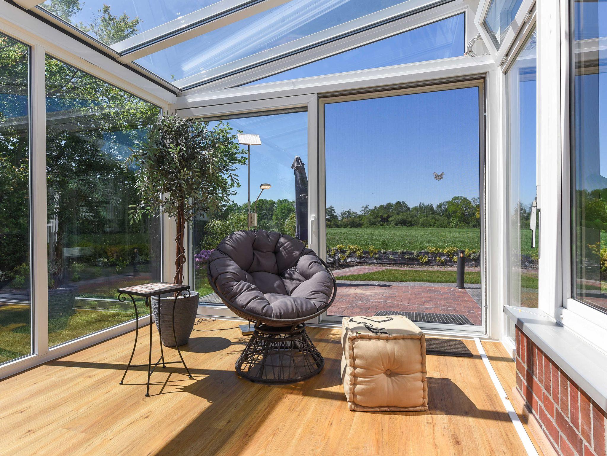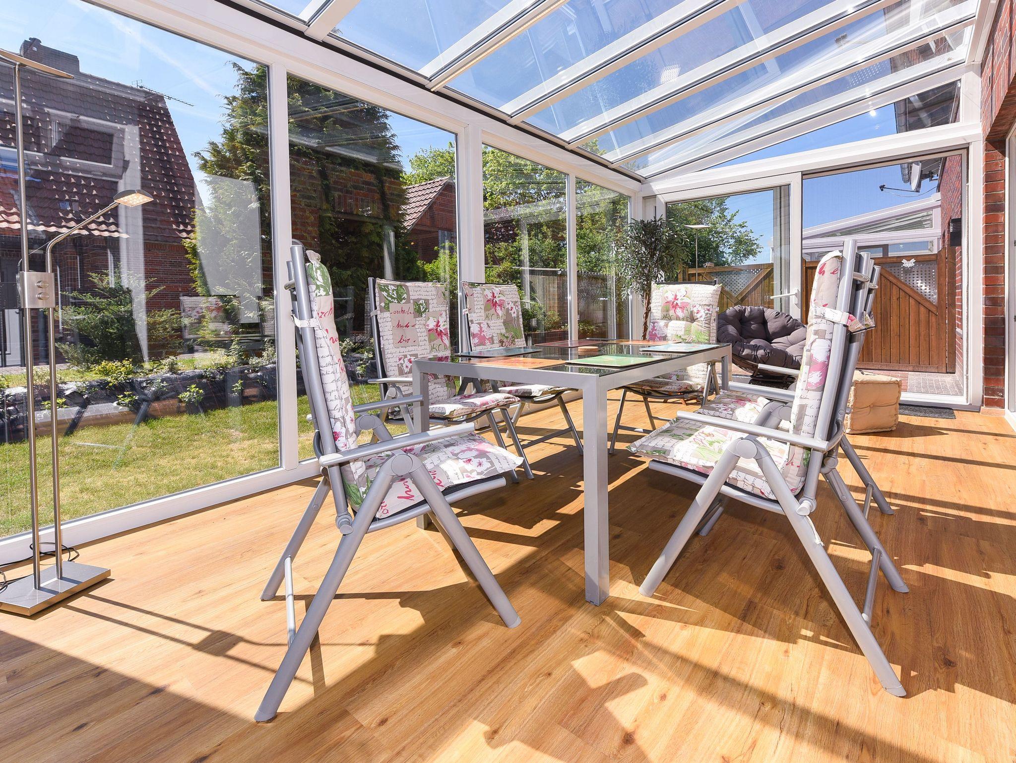 In der Angabe zur Größe der Wohnung ist der 24 Quadratmeter große Wintergarten enthalten, ebenfalls sind die beiden Terrassen zur Hälfte ihrer Größe berücksichtigt.