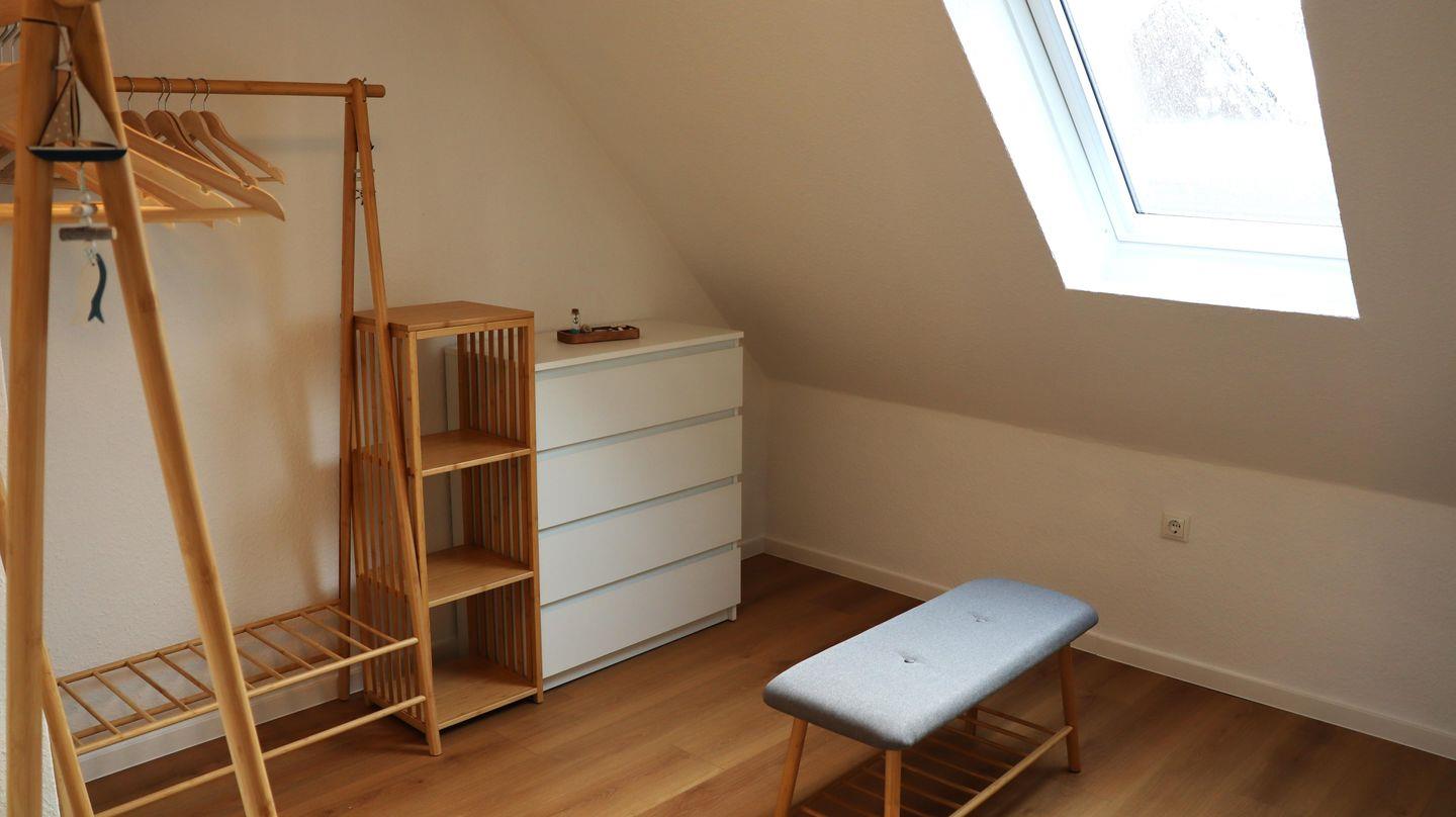 • Separates Ankleidezimmer mit Kleiderständern, Kommoden und Regalen