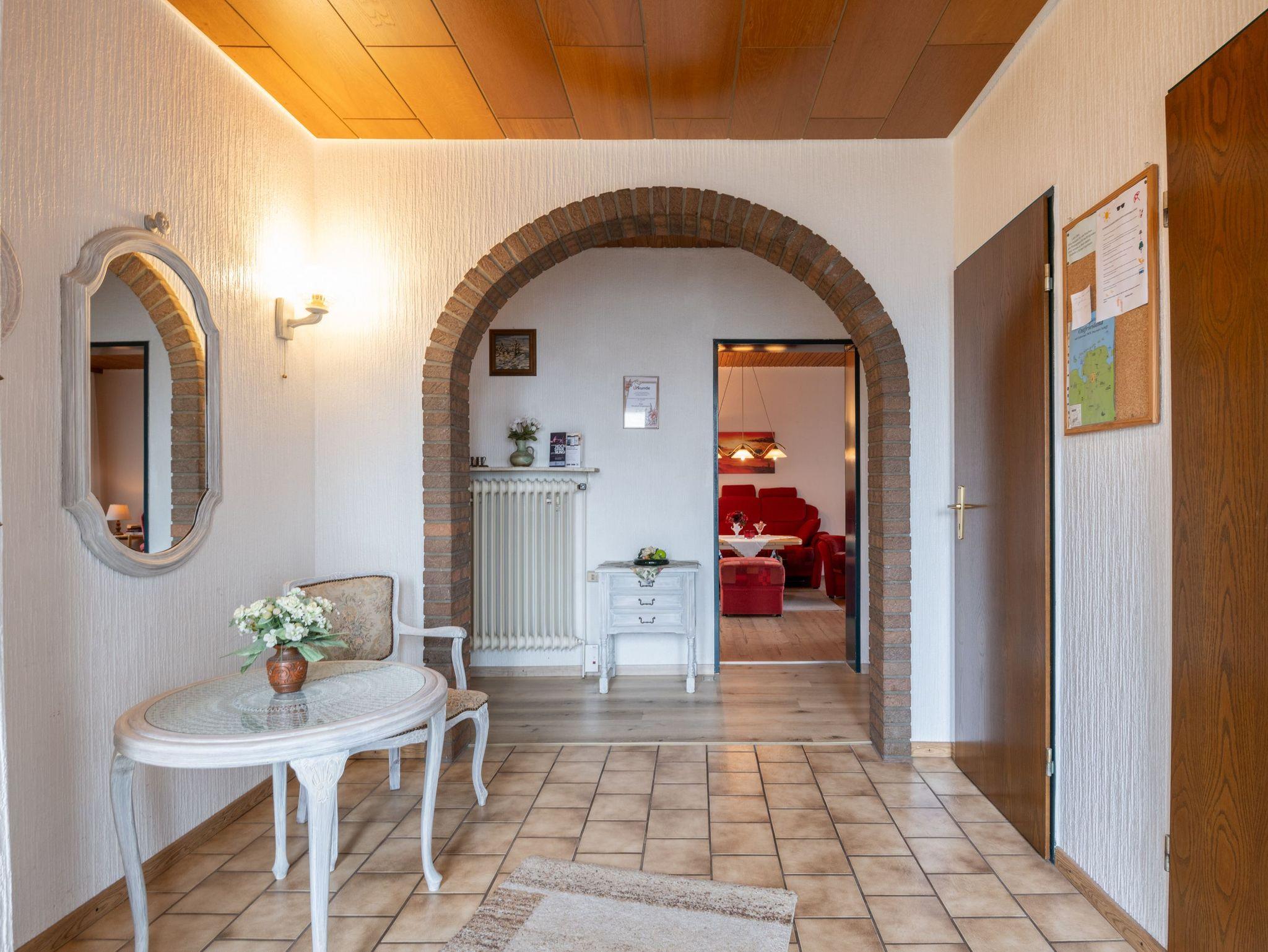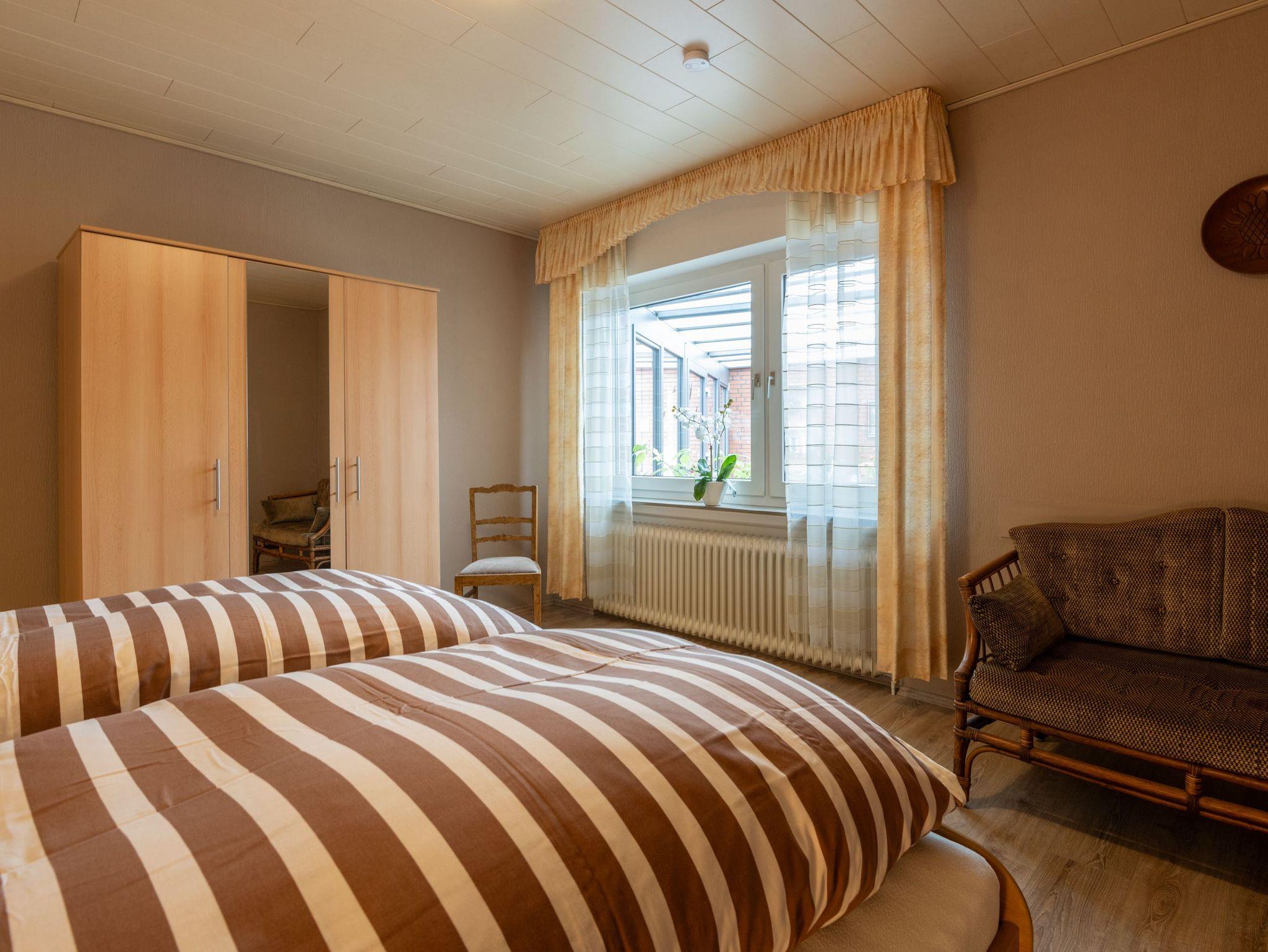 Die Ferienwohnung liegt im Erdgeschoss und ist sehr ruhig und doch zentral. Sie betreten die Ferienwohnung und gelangen in einen Flur, von hier aus gelangen Sie in alle Räume. Das große Wohnzimmer verfügt über eine zusätzliche Schlafcouch (1,40 x 2,00 m) und einem angrenzenden Wintergarten. In der Küche befindet sich eine komplett ausgestattete Einbauküche mit Esstisch und vier Stühlen und im Schlafzimmer befindet sich ein Doppelbett (2,00 x 2,00 m) und ausreichend Stauraum für Kleidung. Für die Gäste ist draußen eine gemütliche Terrasse vorhanden und für die kleinen Gäste ist auf dem Grundstück ein kleiner Spielplatz angelegt worden.