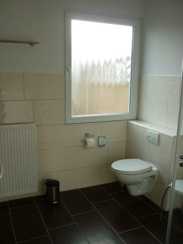 Der Flur und das Bad befinden sich auf einer Ebene.