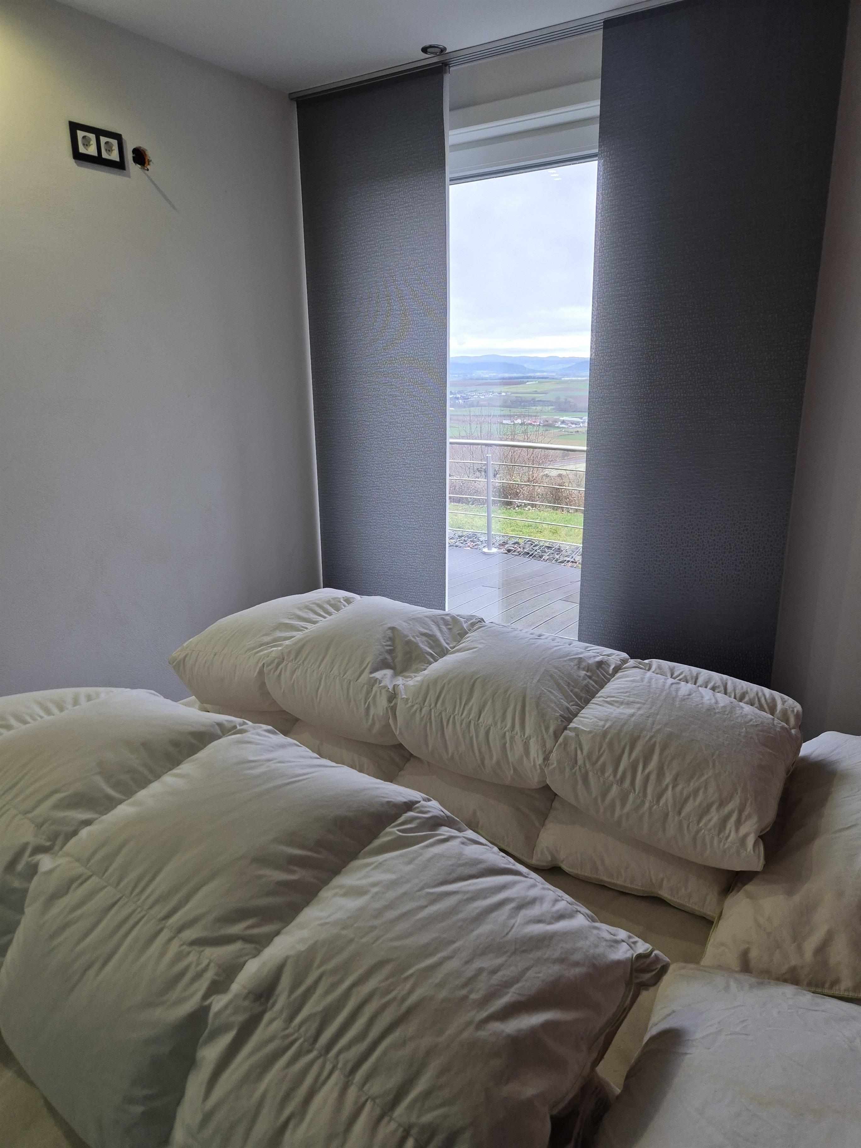 - Die Fenster im großen Schlafzimmer und Wohn-/Essbereich verfügen über Bodentiefe Fenster von denen man einen Wunderschönen Fernblick hat und einen freien Zugang zur Terrasse