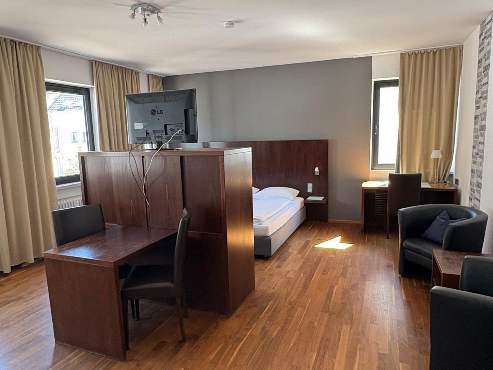 Genießen Sie komfortables Wohnen auf Zeit in unserem stilvoll eingerichteten Studio (ca. 35m²) mit Queen Size Bett (1,6 x 2,0?m), praktischem Schreibtisch, modernem Bad mit Dusche, TV, W-LAN-Zugang und Nespressomaschine. Die Kitchenette inklusive Mikrowelle bietet alles für die Zubereitung kleiner Mahlzeiten. Perfekt für Berufstätige, Pendler oder jeden, der komfortabel, zentral und flexibel in Homburg wohnen möchte.