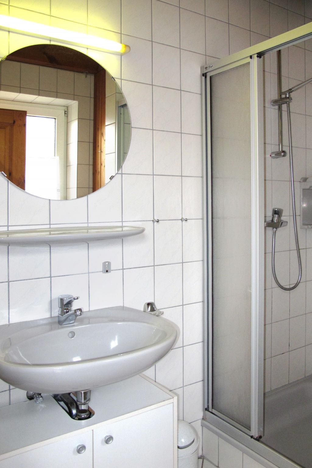 4-room semi-detached house 72 m2 on 2 levels, south-west facing position. Object suitable for 4 adults + 2 children. Cosy furnishings: living/dining room with cable TV, hi-fi system and DVD. Exit to the terrace. Open kitchen (4 hot plates, oven, toaster, kettle, microwave, electric coffee machine). Shower/WC. Upper floor: 2 rooms, each room with 1 double bed. 1 children's room with 1 x 2 bunk beds (70 cm, length 160 cm). Sep. WC. Terrace furniture, barbecue, deck chairs (2). Facilities: children's high chair, baby cot. Internet (WiFi, free). Please note: maximum 2 pets/ dogs allowed. Smoke alarm, fire extinguisher. There is a beer tap in the house. Maximum occupancy: 4 adults and 2 children. The owner does not accept occupancy of more than 4 adults.