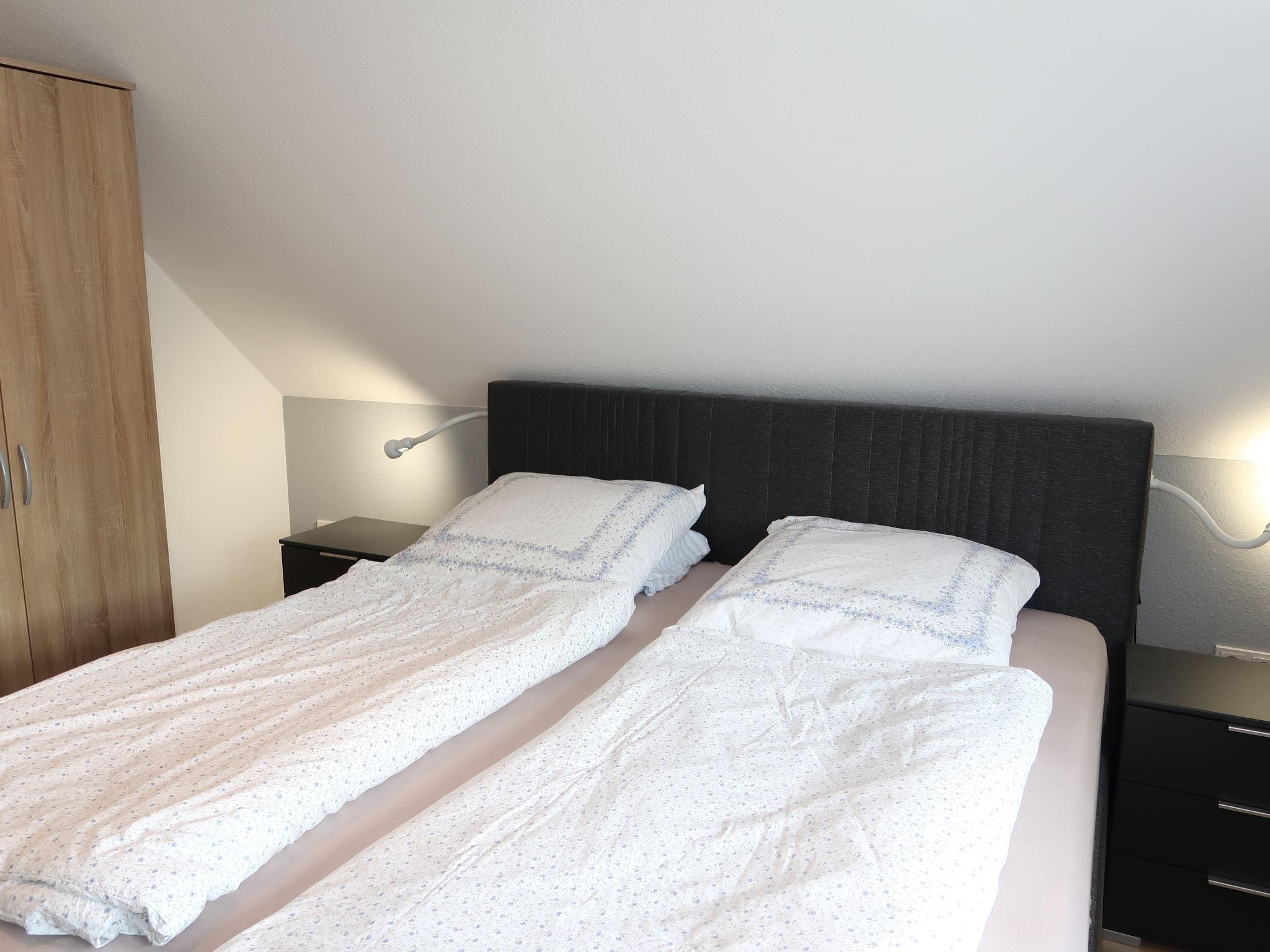"Strandkorb", 3-room apartment 75 m2 on 2 levels. Modern and cosy furnishings: open living/dining room with satellite TV (flat screen). Exit to the terrace. Open kitchen (oven, dishwasher, 4 ceramic glass hob hotplates, toaster, kettle, microwave, electric coffee machine) with dining nook. Bath/shower. Gas heating. Upper floor: 1 room with 1 double bed (180 cm, length 200 cm). 1 room with 2 beds (90 cm, length 200 cm). Terrace 15 m2. Terrace furniture. Facilities: washing machine. Internet (WiFi, free). Please note: non-smokers only. Maximum 2 pets/ dogs allowed. Smoke alarm.