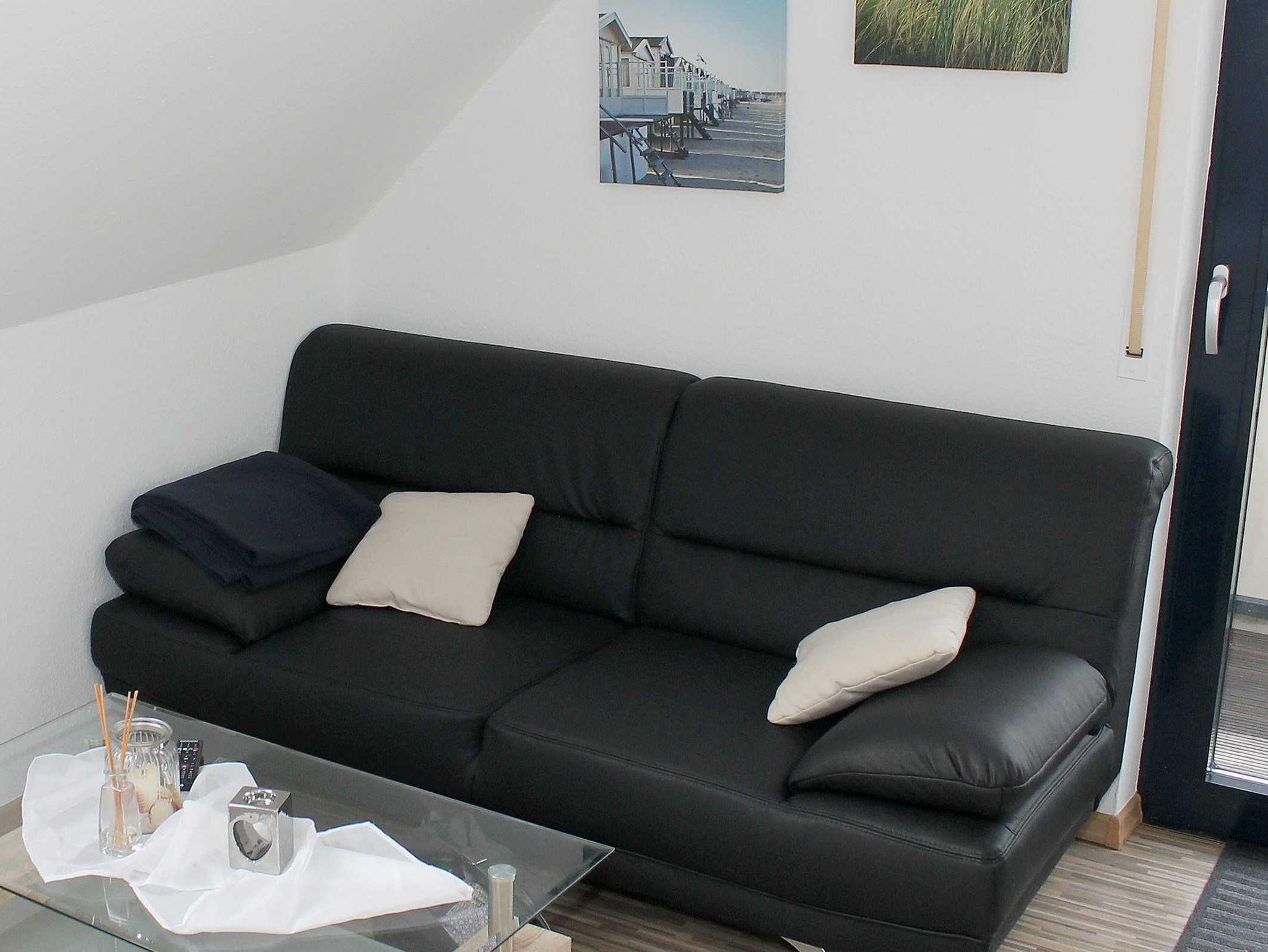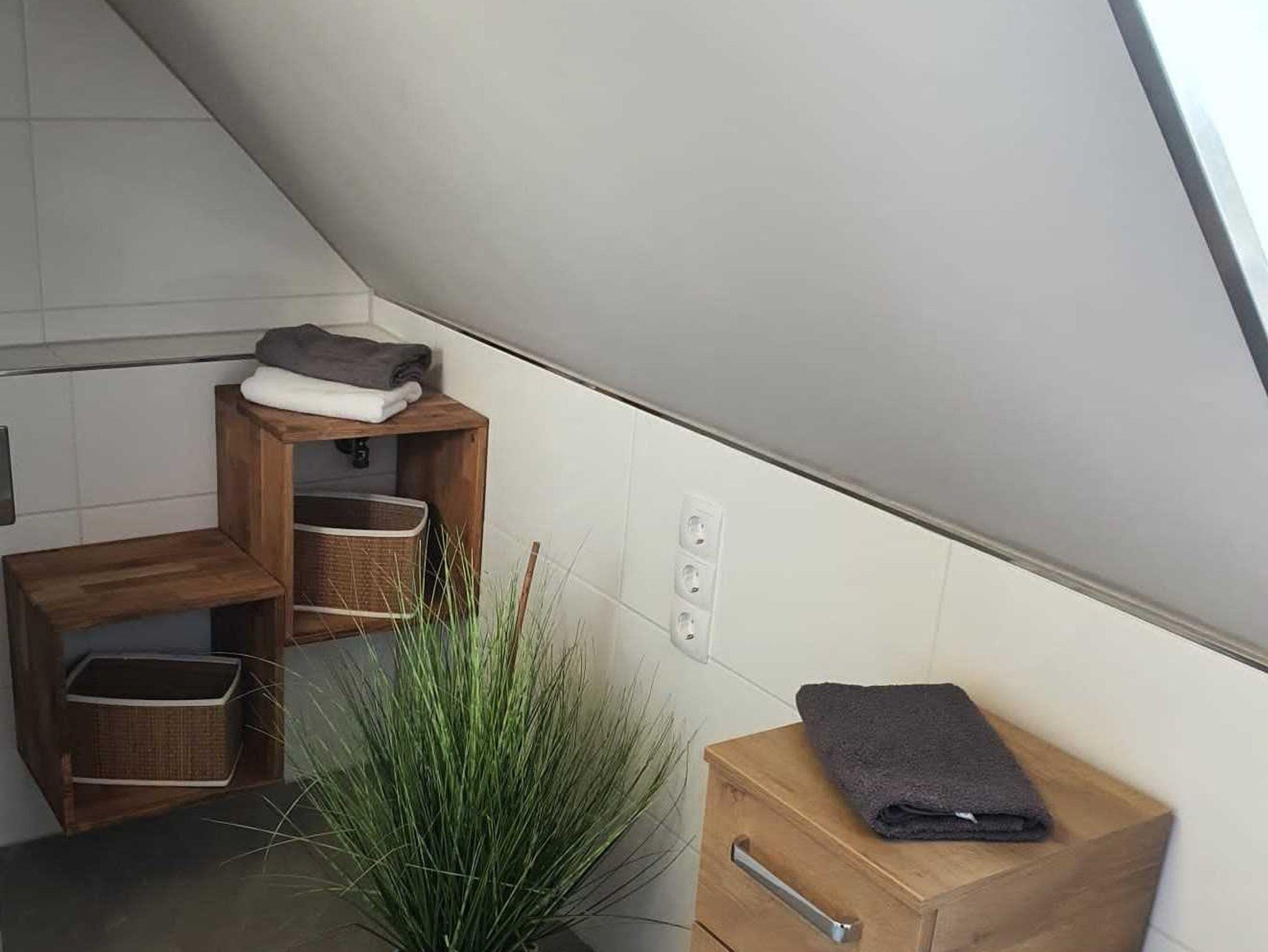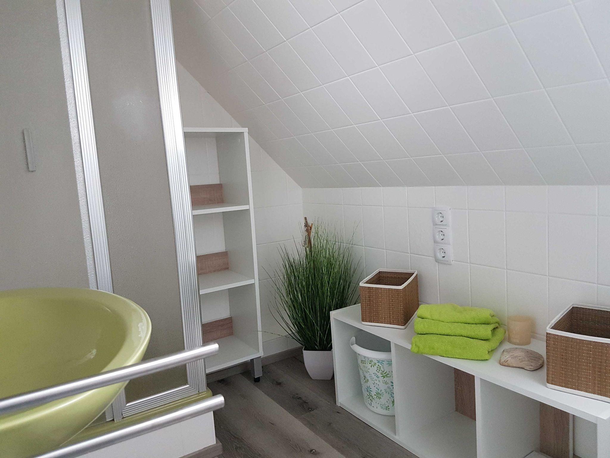 Die Wohnung befindet sich im 1.OG eines gepflegten 3 Familienhauses. Der kombinierte Wohn - Schlafraum verfügt über 1 Doppelbett 1,60 m breit, Couch, Esstisch für 2 Personen. Das Sideboard mit Flachbildschirm stellt eine kleine Trennung Zwischen Wohnen & Schlafen da. Den Fernseher kann man sowohl zum Schlaf -als auch zum Wohnbereich ausrichten. Die separate Kochecke verfügt über einen Kühlschrank mit kleinem Gefrierteil, 4 Flammen Ceran Kochfeld und Backofen, Spülmaschine. Küchenutensilien des täglichen Bedarfs, Wasserkocher, Toaster, Kaffeemaschine etc. sind selbstverständlich ausreichend vorhanden. Das Tageslichtbad ist hell, freundlich mit einer Dusche ausgestattet. Ein Parkplatz gehört zur Ferienwohnung, ebenso ein Abstellraum für Fahrräder.