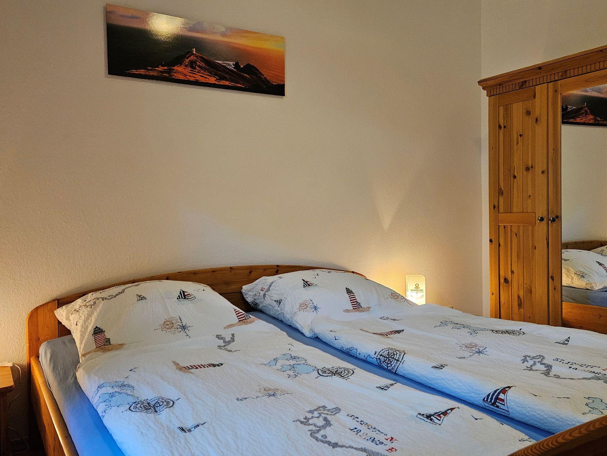 Die Erdgeschoßwohnung Baltrum verfügt über einen Wohnraum mit Küchenzeile mit Zugang zur Terrasse (direkt am Garten), sowie zwei Schlafräume mit Doppelbett, ein Bad mit DU/WC und einen Abstellraum. Sie ist mit Fliesen- und Laminatböden ausgestattet. In der vollausgestatteten Küche finden Sie Geschirrspüler, Wasserkocher, Backofen, Mikrowelle und Kühlschrank mit Eisfach. Flachbildfernser, Blu-ray-Player und WLAN gehören selbstverständlich zur Ausstattung.