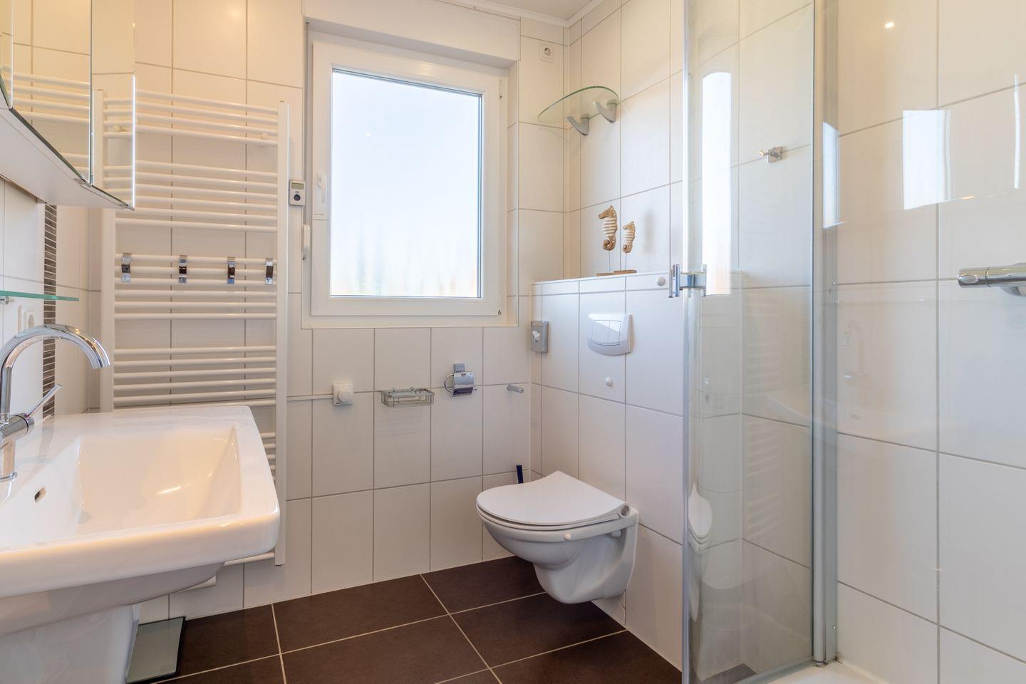 Ein weiteres Highlight des Ferienhauses Alana ist das Badezimmer mit einer praktischen Dusche und Wanne, ideal für entspannende Bäder nach einem aktiven Tag an der Küste. Zusätzlich steht Ihnen ein Gäste-WC zur Verfügung, um den Komfort für Ihre Gruppe zu erhöhen. Die gesamte Unterkunft wurde 2024 renoviert, sodass Sie sich auf modernen Wohnkomfort freuen dürfen.