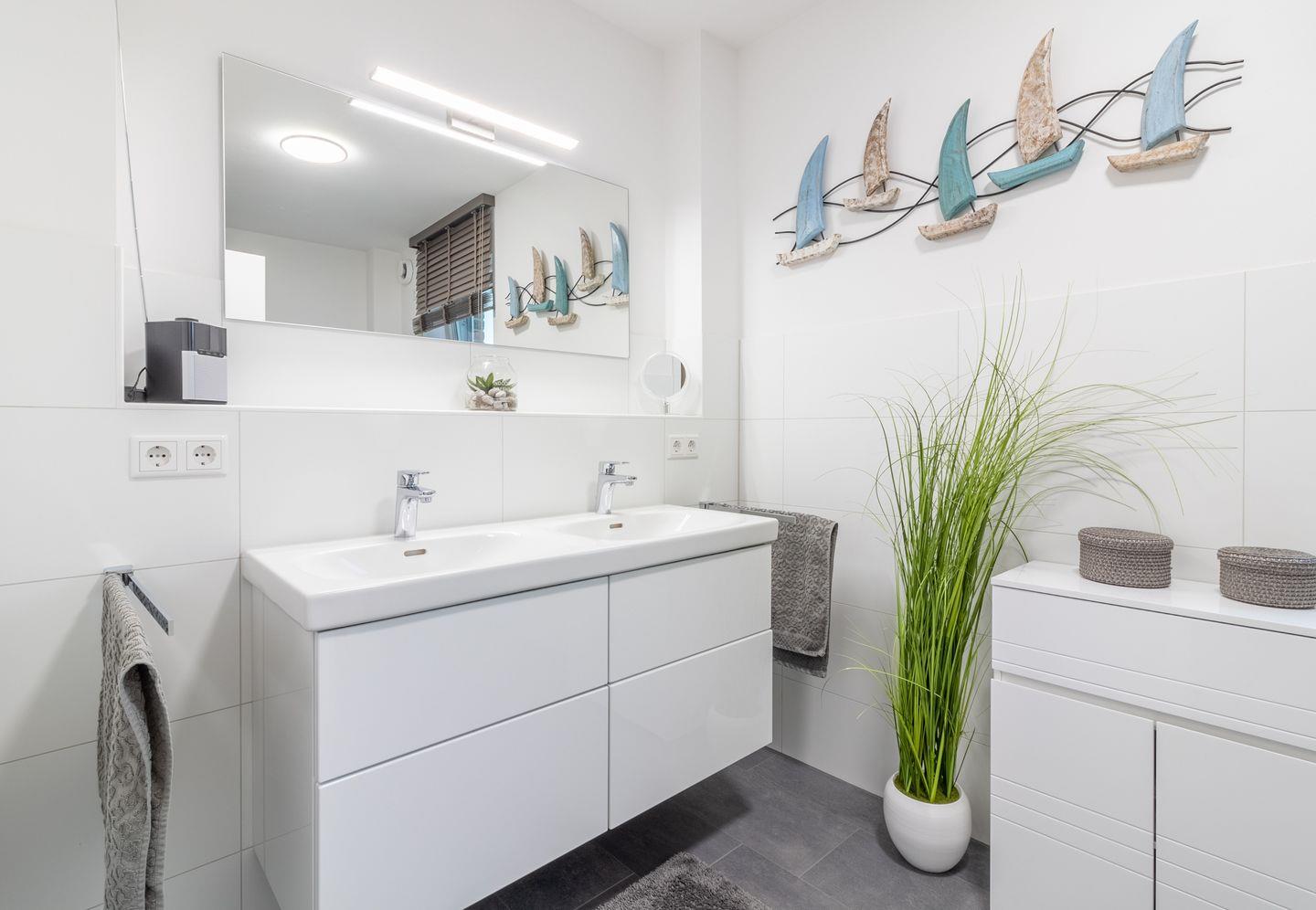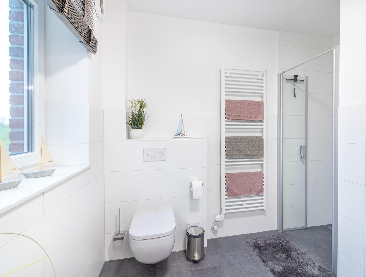 Im Badezimmer finden Sie eine moderne Dusche mit Badewanne sowie einen Haartrockner und Kosmetikspiegel. Zusätzlich steht Ihnen ein separates Gäste-WC zur Verfügung. Die Infrarotkabine bietet nach einem ausgiebigen Strandspaziergang wohlige Entspannung.