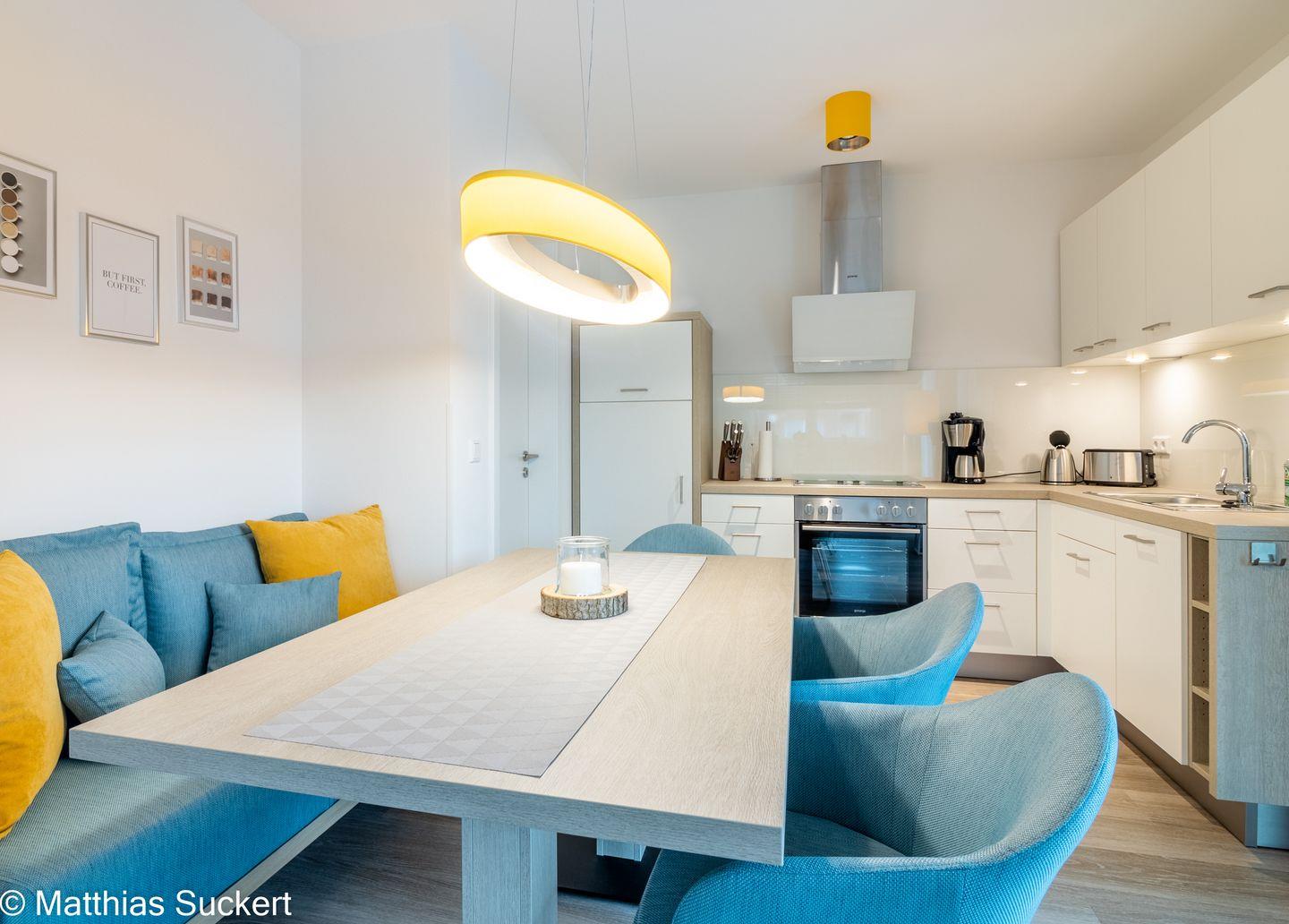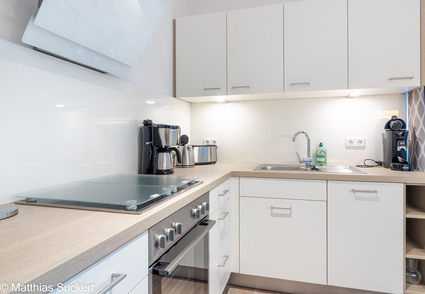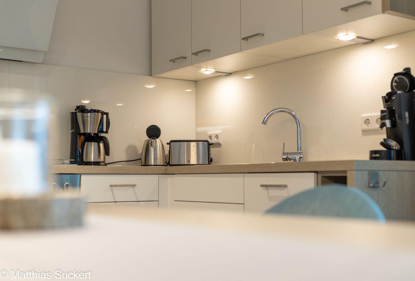 Die gut ausgestattete Küche lässt keine Wünsche offen. Sie verfügt über einen Herd mit Ceranfeld, einen Elektro-Backofen, Kühlschrank und ein Gefrierfach, sowie eine Mikrowelle, Kaffeemaschine, Wasserkocher und Toaster. Zusätzlich befindet sich eine Spülmaschine in der Küche, die Ihnen die Urlaubszeit erleichtert und Ihnen mehr Zeit zum Entspannen lässt. Hochwertige Küchenutensilien und ein umfangreiches Geschirrset garantieren, dass Sie Ihre selbst zubereiteten Menüs in vollen Zügen genießen können.