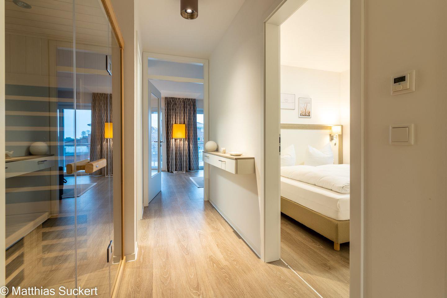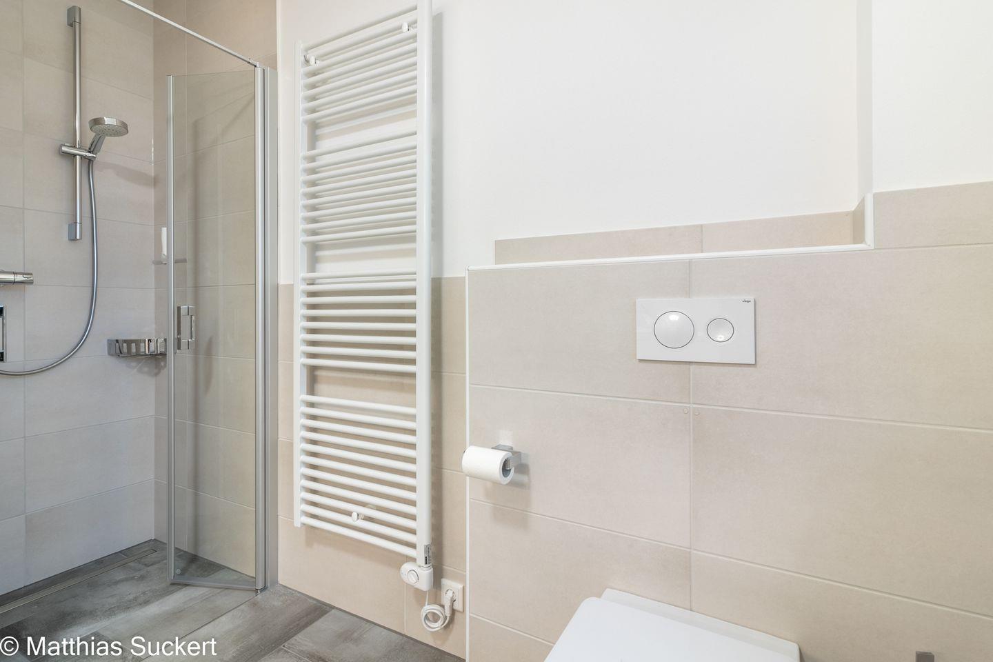 Die Fewo Fiete bietet zwei geschmackvoll eingerichtete Schlafzimmer, die jeweils mit einem hochwertigen Schlafkomfort ausgestattet sind. Zusätzliche Annehmlichkeiten wie eine Fußbodenheizung sorgen für ein angenehmes Wohnklima. Ein Badezimmer mit bodengleicher Dusche und ein zusätzliches Gäste-WC bieten ausreichend Platz für die ganze Familie.
