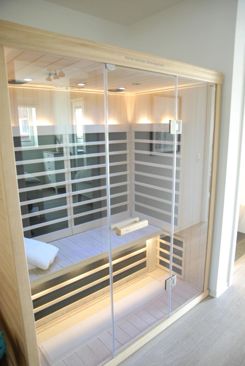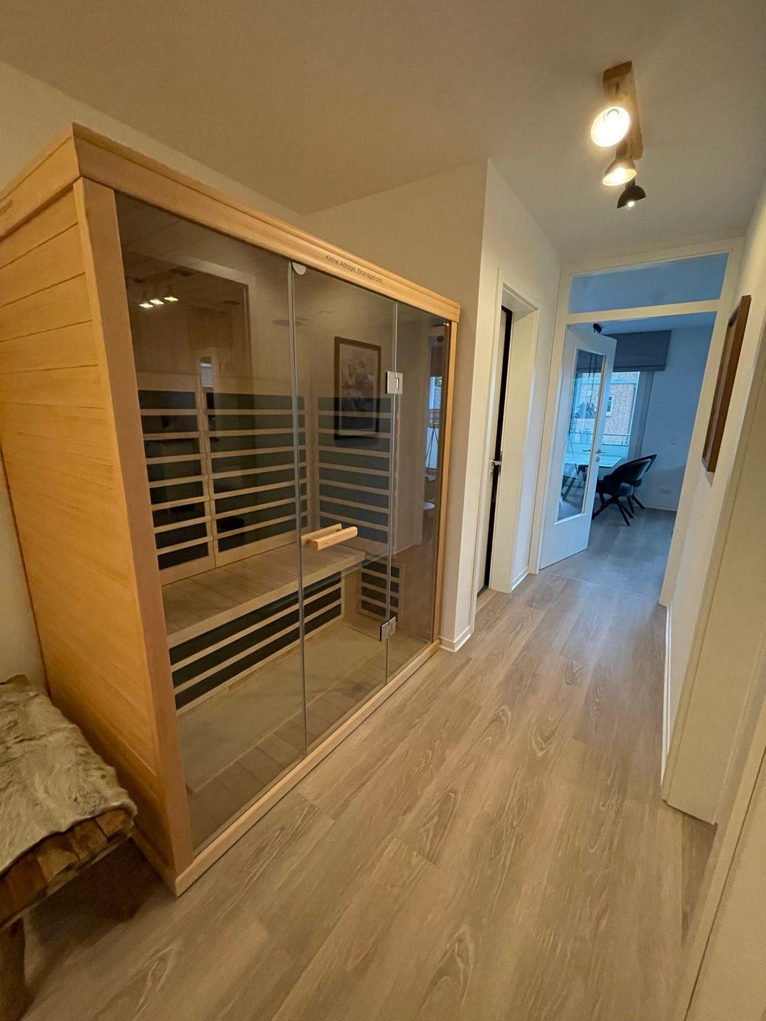 In einem Schlafzimmer befindet sich ein Doppelbett mit einer Liegefläche von 180x200 cm und ein 3-türiger Kleiderschrank sowie ein TV-Gerät. Das zweite Schlafzimmer ist mit 2 Einzelbetten mit einer Liegefläche von je 90x200 cm bestückt, außerdem mit einem 1-türigen Kleiderschrank, einer Schubkastenkommode und einem TV-Gerät. Die hochwertigen Matratzen sind aus dem Hause Musterring. Zusätzlich zum Badezimmer mit Doppelwaschtisch, Dusche und Toilette verfügt die Wohnung über ein Gäste-WC. Außerdem nutzen Sie kostenlos eine Infrarot-Wärmekabine und eine E-Ladesäule gg. Gebühr.