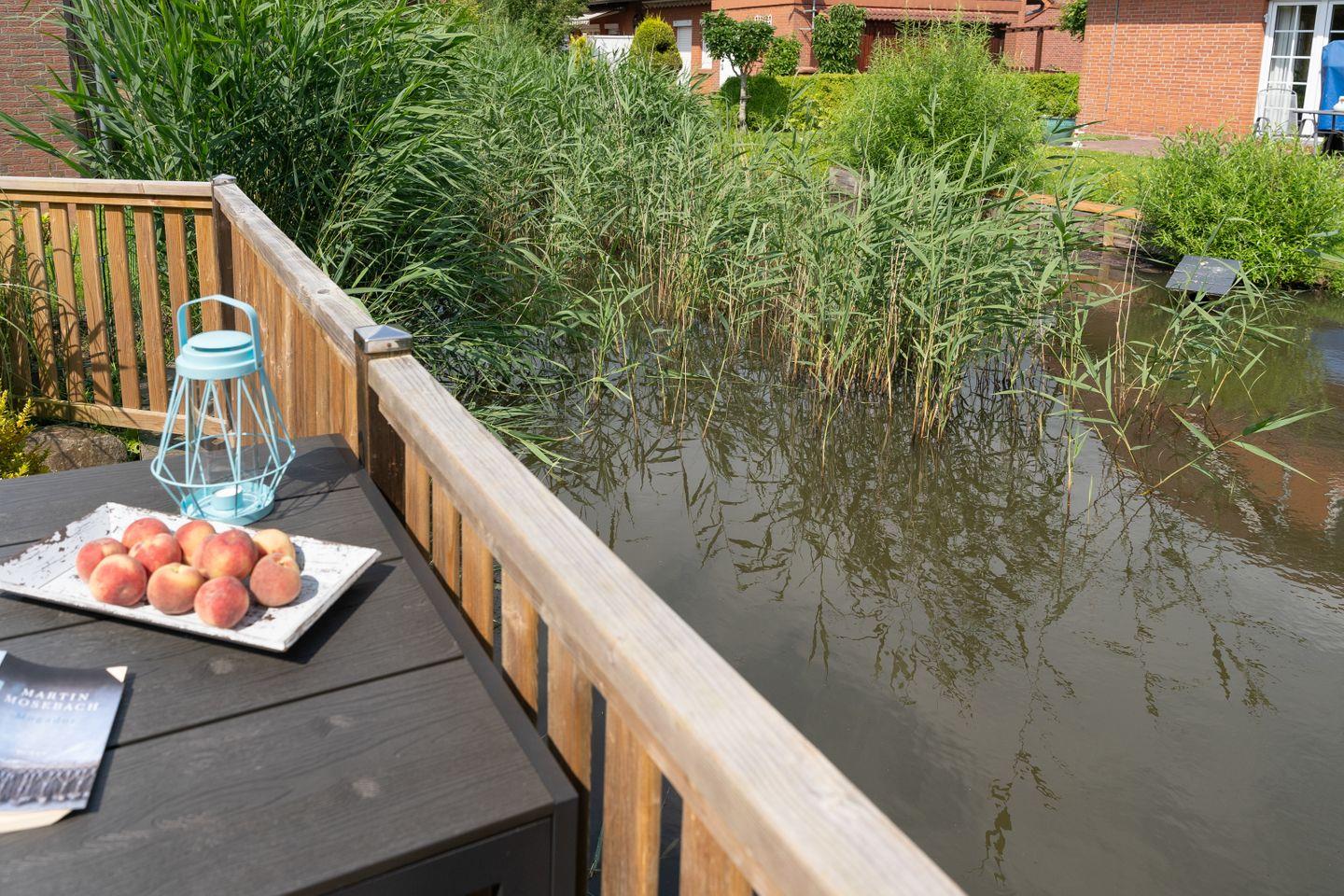 Das Besondere am Haus am Teich sind die zwei Terrassen. Eine befindet sich am Wohnzimmer und ist ideal für Frühstücke im Freien ist, da hier schon am Morgen die Sonne scheint. Hinter dem Haus erstreckt sich eine große Holzterrasse direkt am Teich, wo Sie dann ab der Mittagszeit die Sonne genießen können.