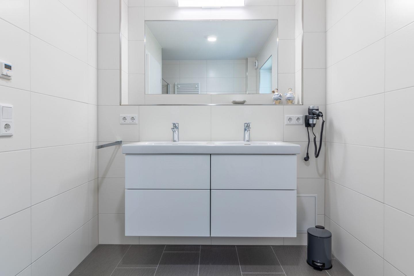 Die Wohnung verfügt über zwei Schlafzimmer, ein Bad und einen kombinierten Wohn- und Essbereich mit einem kleinen Hauswirtschaftsraum inklusive Waschmaschine und Bügeleisen. Eine großzügige 16m² Sonnenterrasse lädt mit einer Sitzgruppe für 4 Personen, 2 Sonnenliegen und einem Sonnenschirm zum Verweilen ein.