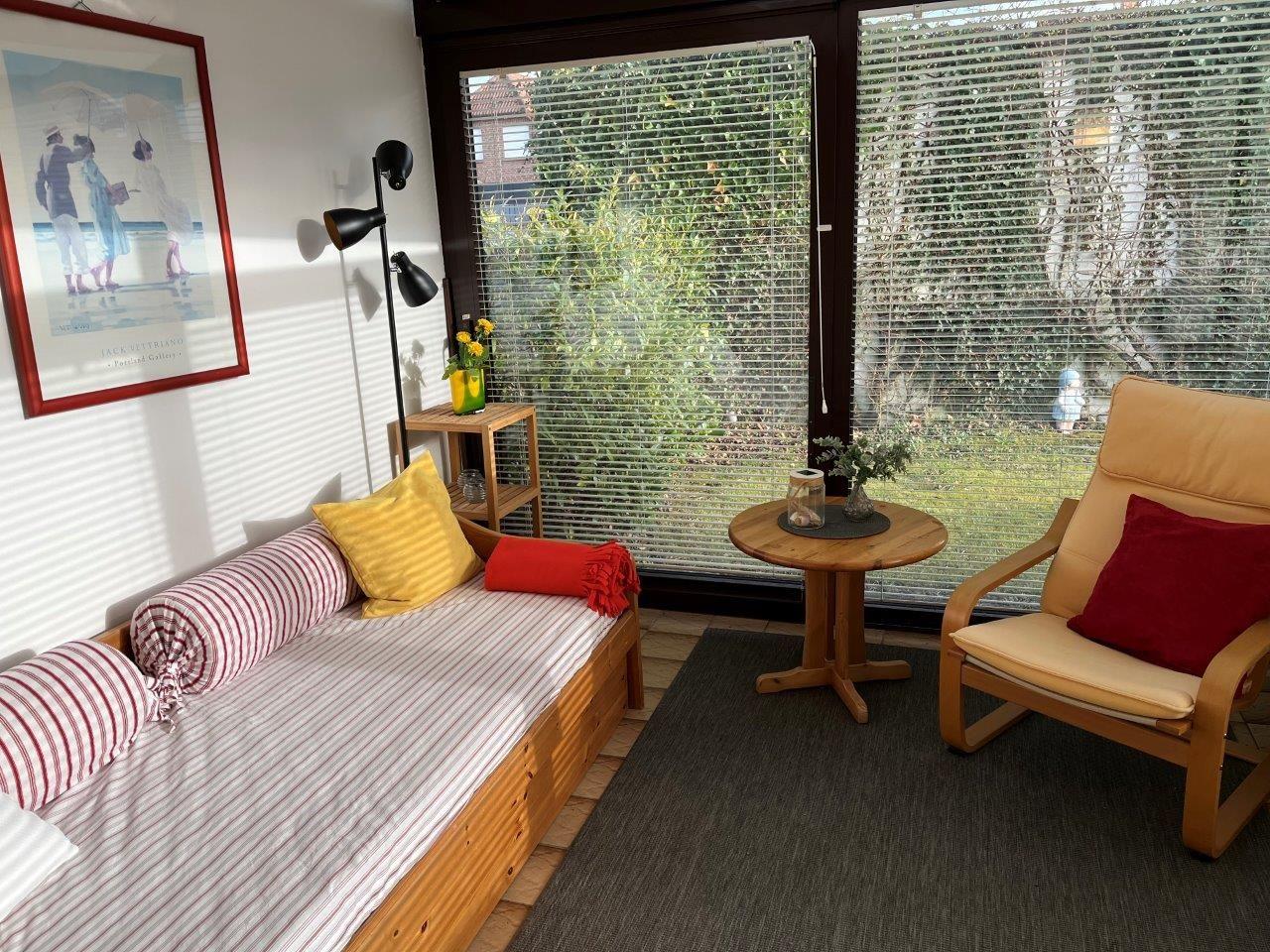Gemütlicher 9 qm großer Wintergarten mit Tagesbett, perfekt zum Entspannen