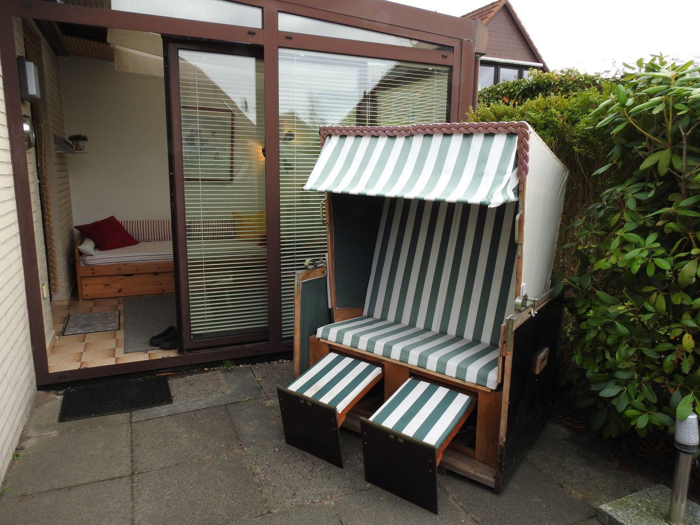 Charmante Ferienwohnung für 2 Personen in ruhiger Lage. Die 34 qm große Wohnung bietet ein Schlafzimmer, einen offenen Wohn-Ess-Bereich, ein Duschbad und einen Wintergarten mit Tagesbett. Kleine Terrasse mit Gartenanteil und Strandkorb. Moderne Ausstattung inkl. WLAN, Kabel-TV und voll ausgestatteter Küchenzeile. Perfekt für einen entspannten Urlaub nahe der Nordsee!