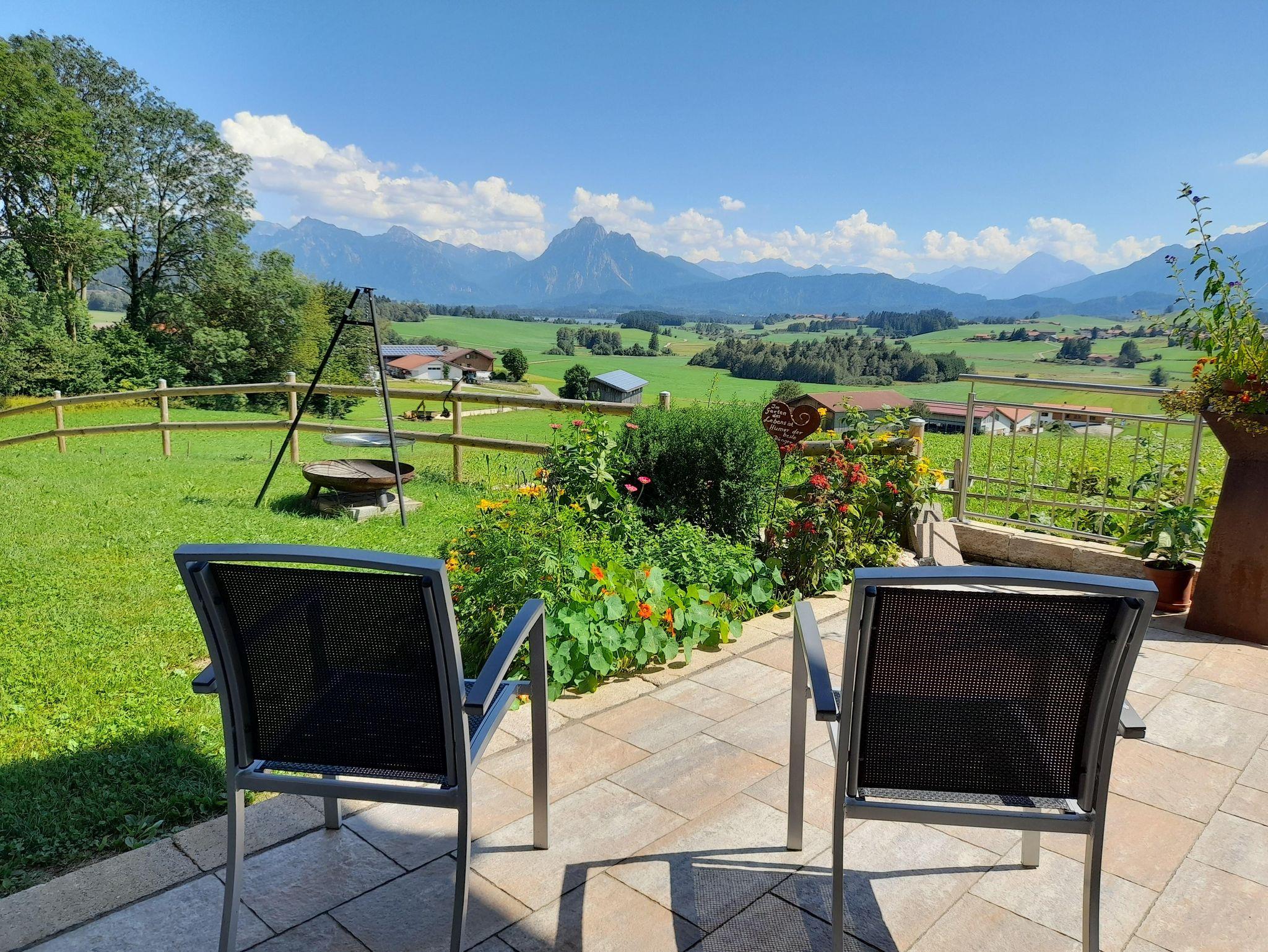 In herrlicher Südlage finden Sie unser Haus Panoramablick Heimen außerhalb von Hopferau, das über zwei neu gestaltete Ferienwohnungen und ein Doppelzimmer verfügt. Ruhig gelegen mit freier Sicht zum Hopfensee, Schloß Neuschwanstein und die Allgäuer Berge. Natur und Aktivität, Kunst und Kultur, Wellnessmassagen und Sauna lassen Ihren Urlaub zum Erlebnis werden. Die Kinder können sich in der Spielscheune, im Spielzimmer und auf dem Spielplatz vergnügen. Wir freuen uns Sie im Haus begrüßen zu dürfen.