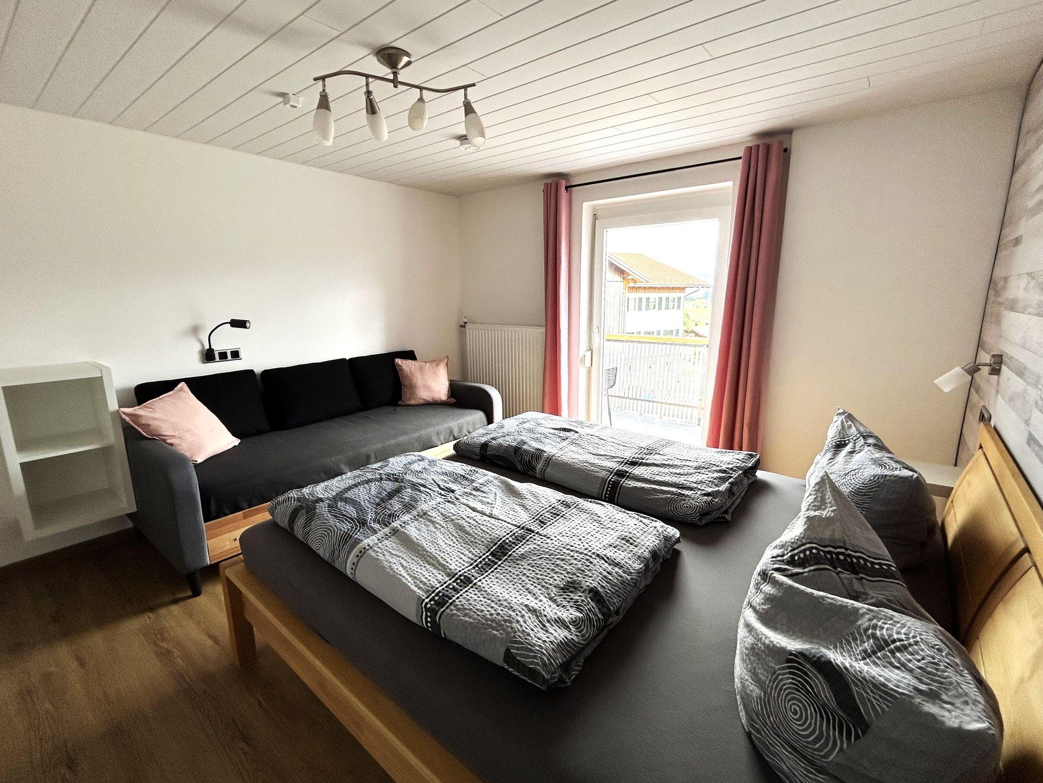 Die Ferienwohnung verfügt über einen großen Süd-Balkon mit Sicht auf die Allgäuer Berge.