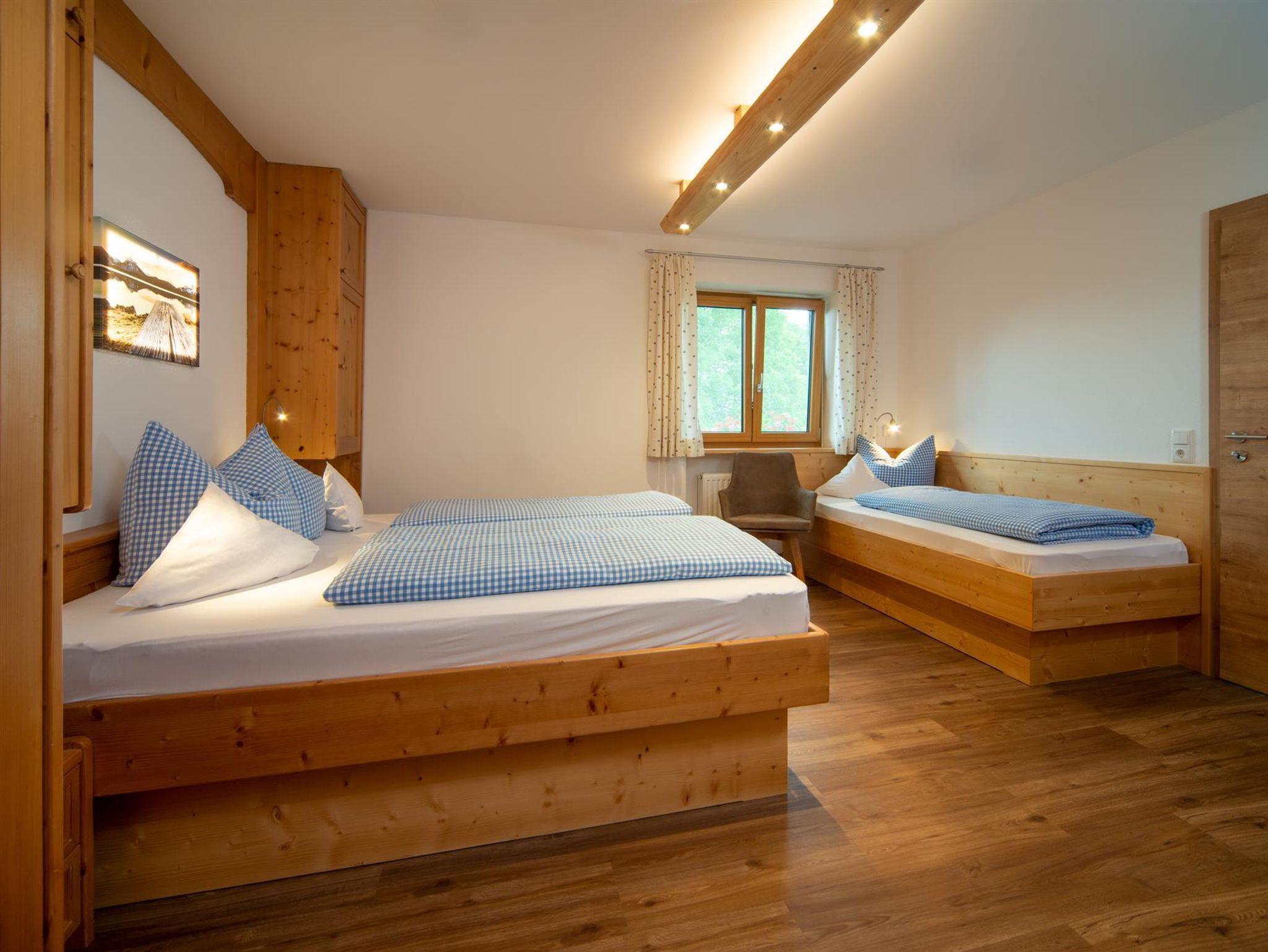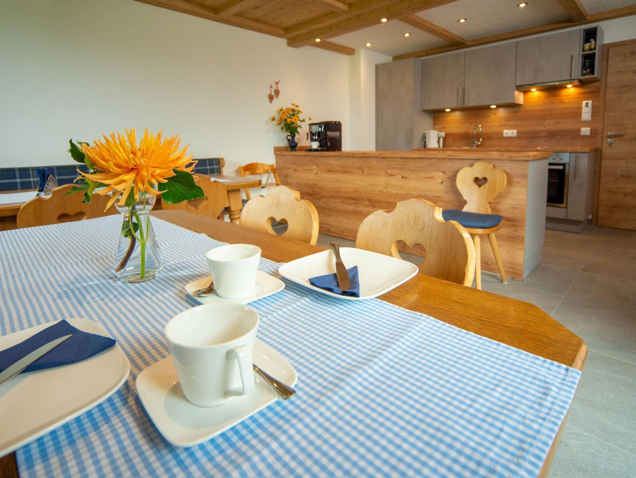 Die Ferienwohnung Hopfensee besteht aus einer Wohnküche und einem separaten Schlafraum mit Doppelbett und Zusatzbett. Der Süd- und Ostbalkon bietet eine wunderbare Aussicht auf die Berge, das Schloß und den Hopfensee. Die Ferienunterkunft bietet eine höherwertige Gesamtausstattung mit gehobenem Komfort. Die Fewo Hopfensee ist direkt kombinierbar mit dem Doppelzimmer Fuchsbau - somit ist ausreichend Platz für 5 Personen.