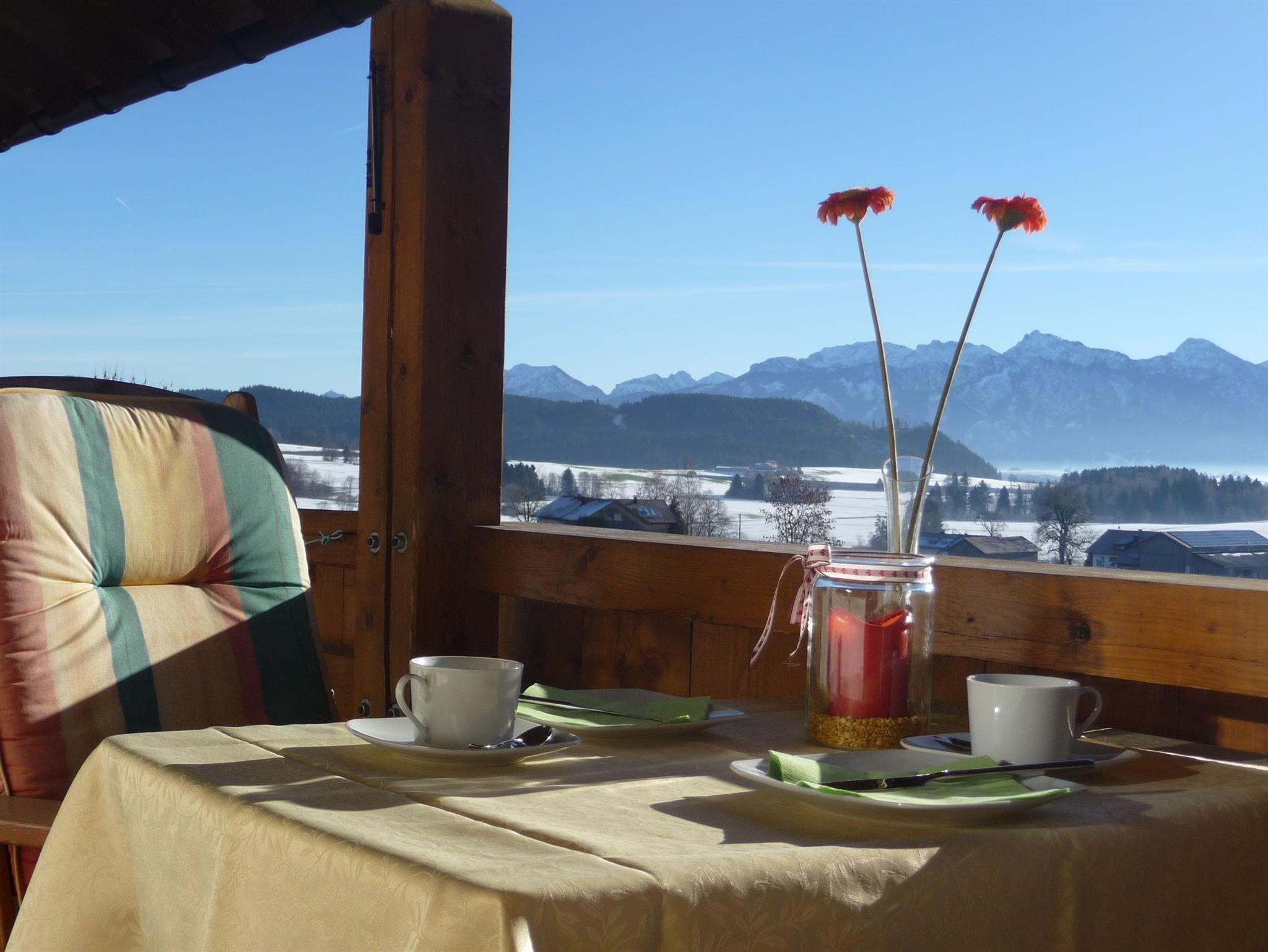 Unse Haus befindet sich in ruhiger und sonniger Ortsrandlage. Die Ferienwohnung befindet sich im 1. Stock. Vom Südbalkon genießen sie die herrliche Aussicht auf die allgäuer Landschaft und die Berge. Im Erdgeschoss gibt es noch eine weitere Ferienwohnung.