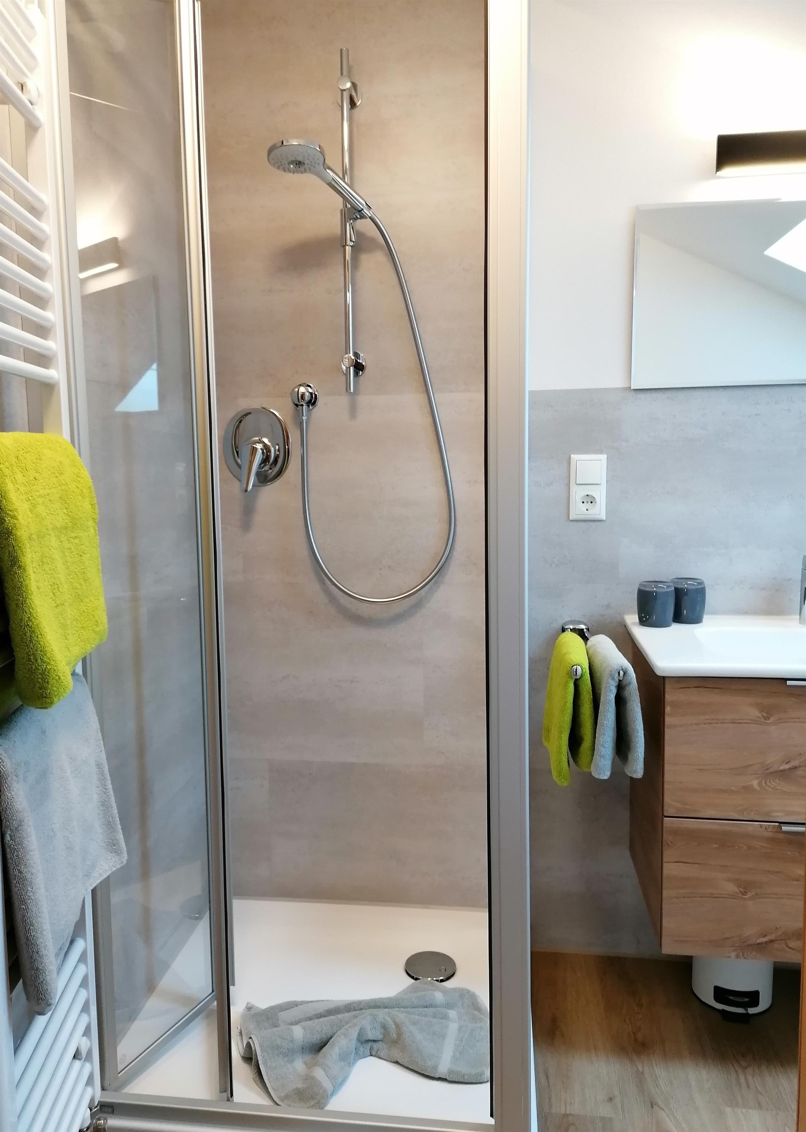 Wohnung "Breitenberg", ca. 64 m², renoviert in 2023, mit Balkon Richtung Westen, mit Garten- und Hofblick, allergikerfreundlich. Die Wohnküche ist voll ausgestattet (Geschirrspüler, Kühlschrank mit kleinem Gefrierfach, Herd mit Backofen, Kaffeemaschine, Toaster, Wasserkocher), Sat-TV und Stereoanlage. Die Wohnung verfügt über zwei Schlafzimmer (mit Duo-Matratzen und unterschiedlichen Härtegrade und Fußende offen) mit jeweils einer kleinen Sitzgelegenheit, Radiowecker, zwei renovierte Bäder mit Dachfenster, flache Duschwanne zum Bequemen Ein- und Ausstieg, Föhn. Elektrische Rollläden und Fliegengittern befinden sich an den Balkontüren. Tiere sind in der Wohnung nicht erlaubt.