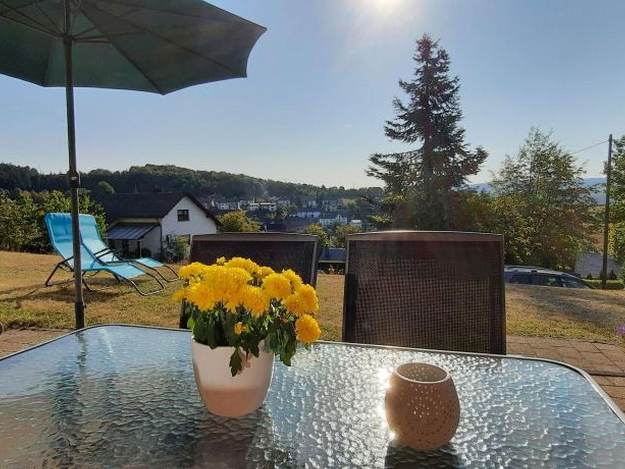 Auf der Terasse können Sie den Blick auf die Weiten des Hunsrücks genießen. Sie haben einen herrlichen Blick bis hin zur höchsten Erhebung von Rheinland-Pfalz, dem Erbeskopf. Dort befindet sich der Nationalpark Hunsrück-Hochwald und das Wintersportzentrum Erbeskopf.