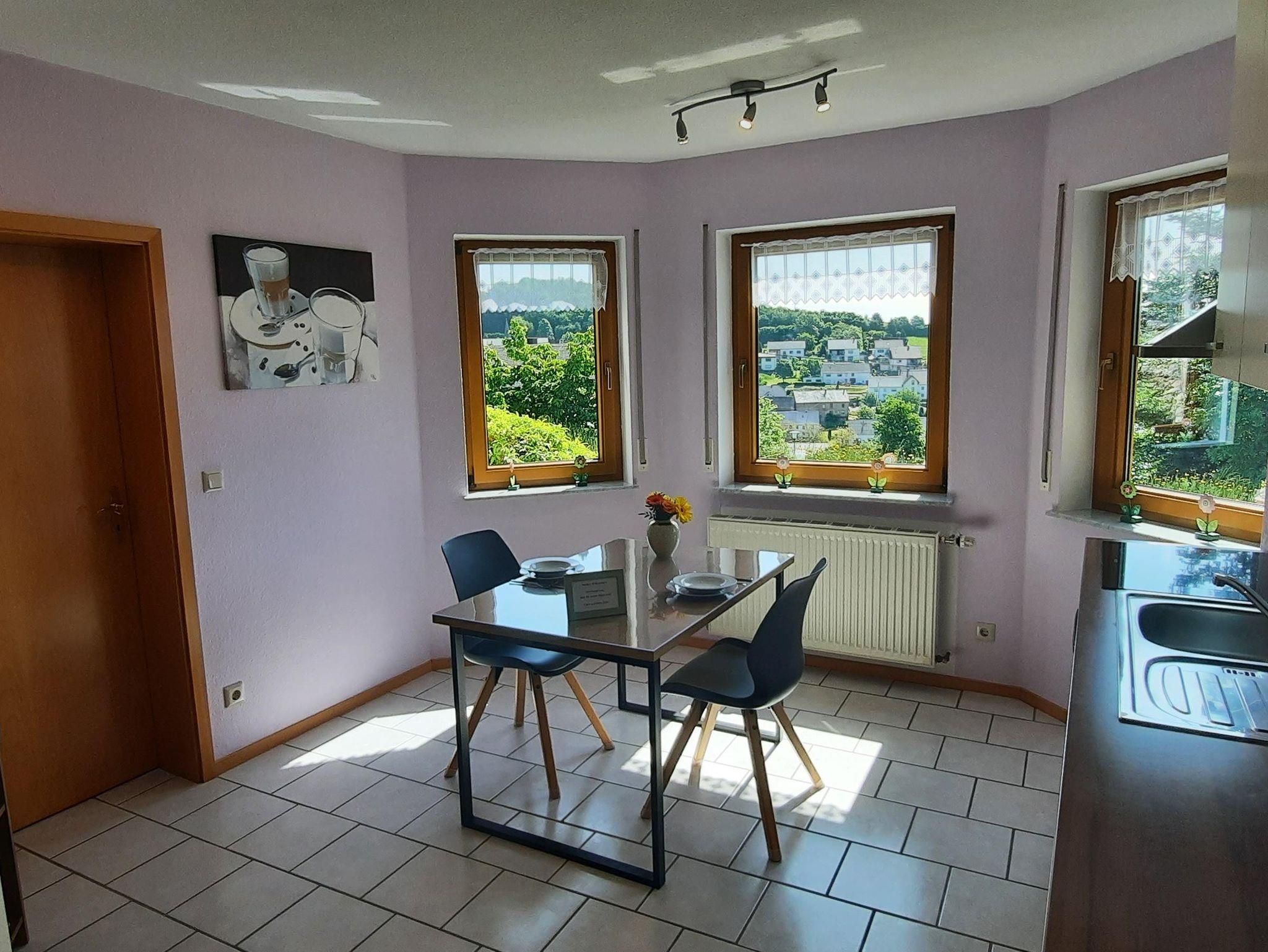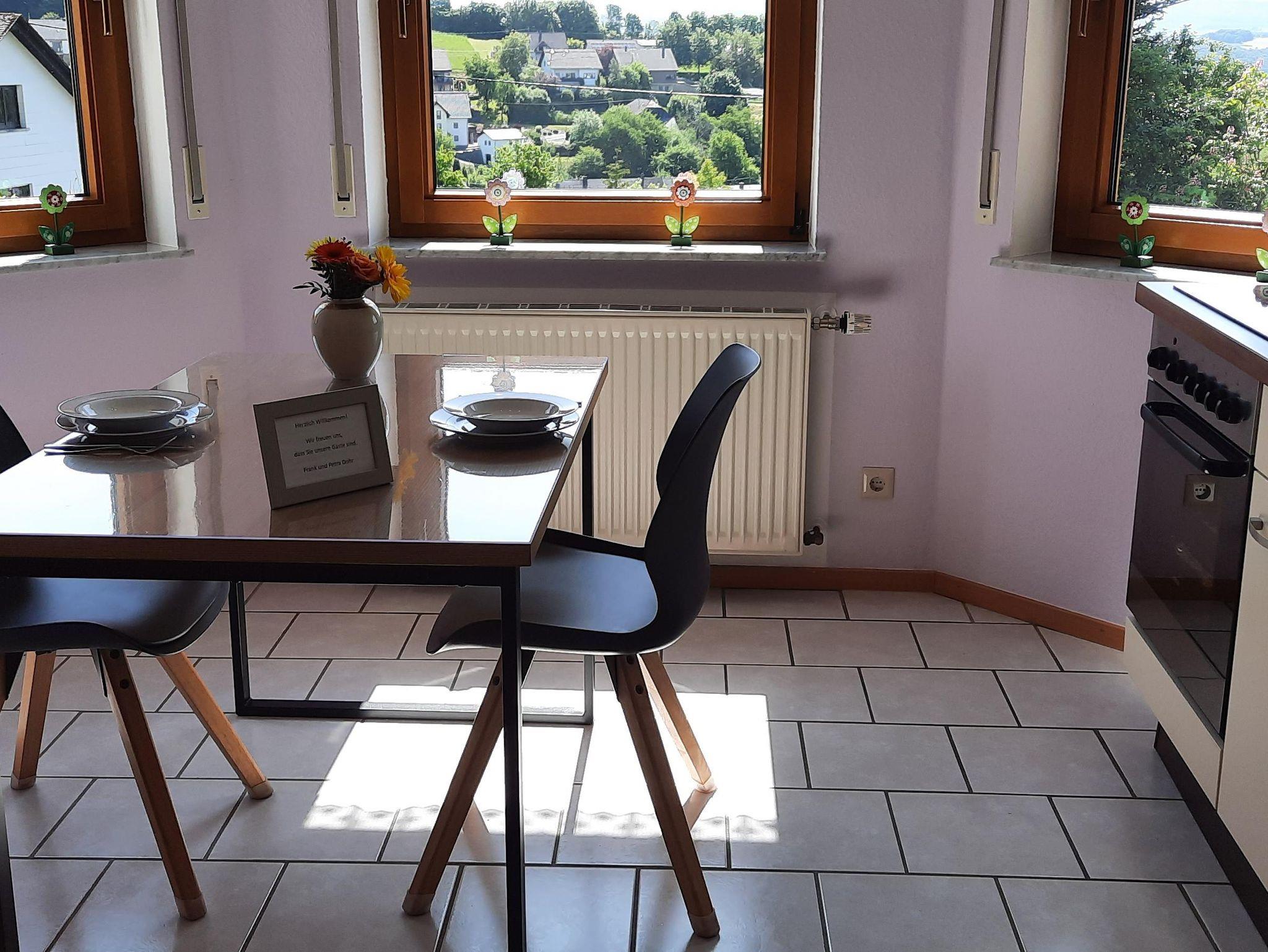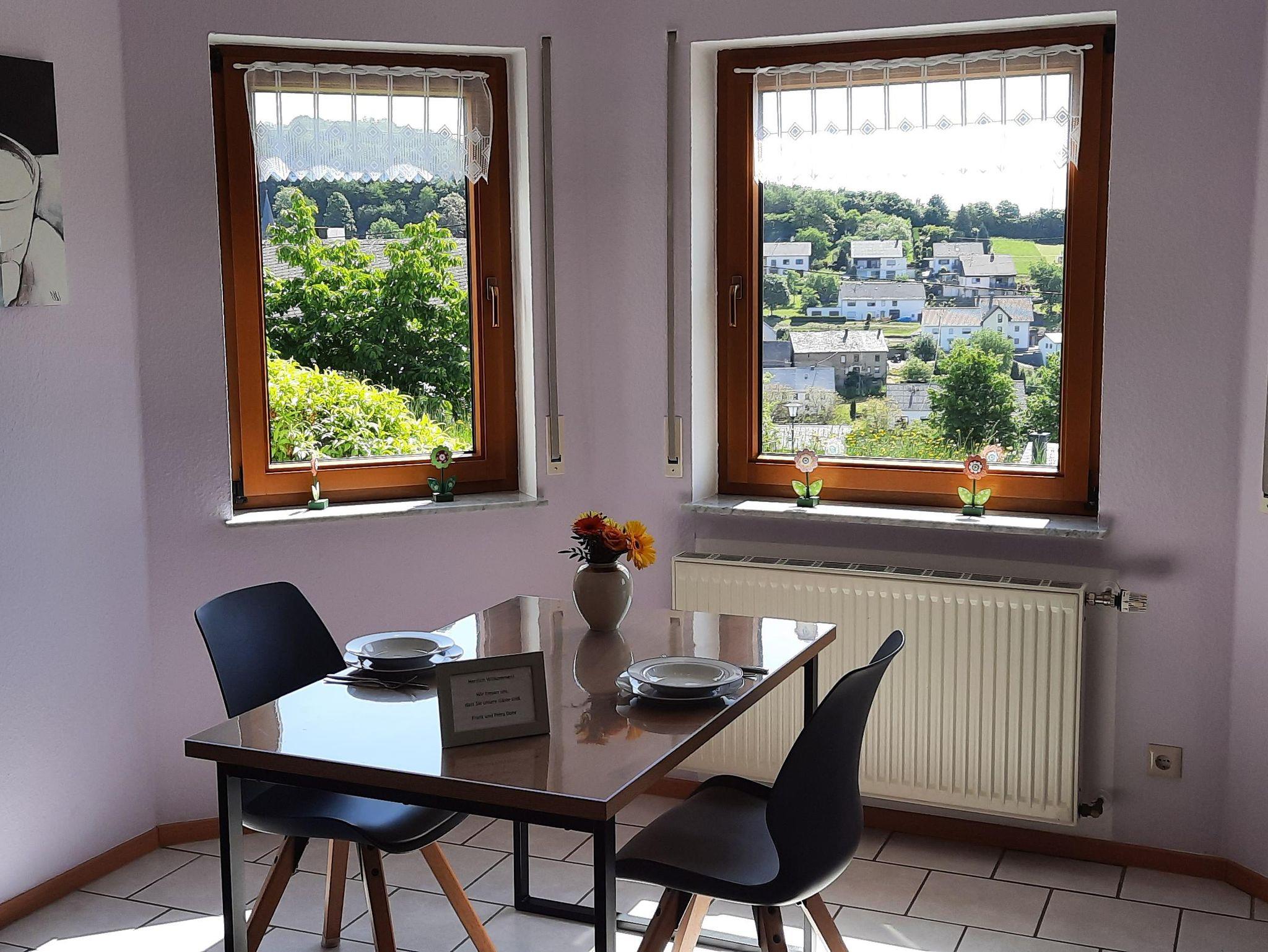 Ferienwohnung mit herrlichem Blick zum Erbeskopf und dem Nationalpark Hunsrück-Hochwald. In unmittelbarer Nähe befindet sich die Traumschleife Dhrontal-Wackentour.