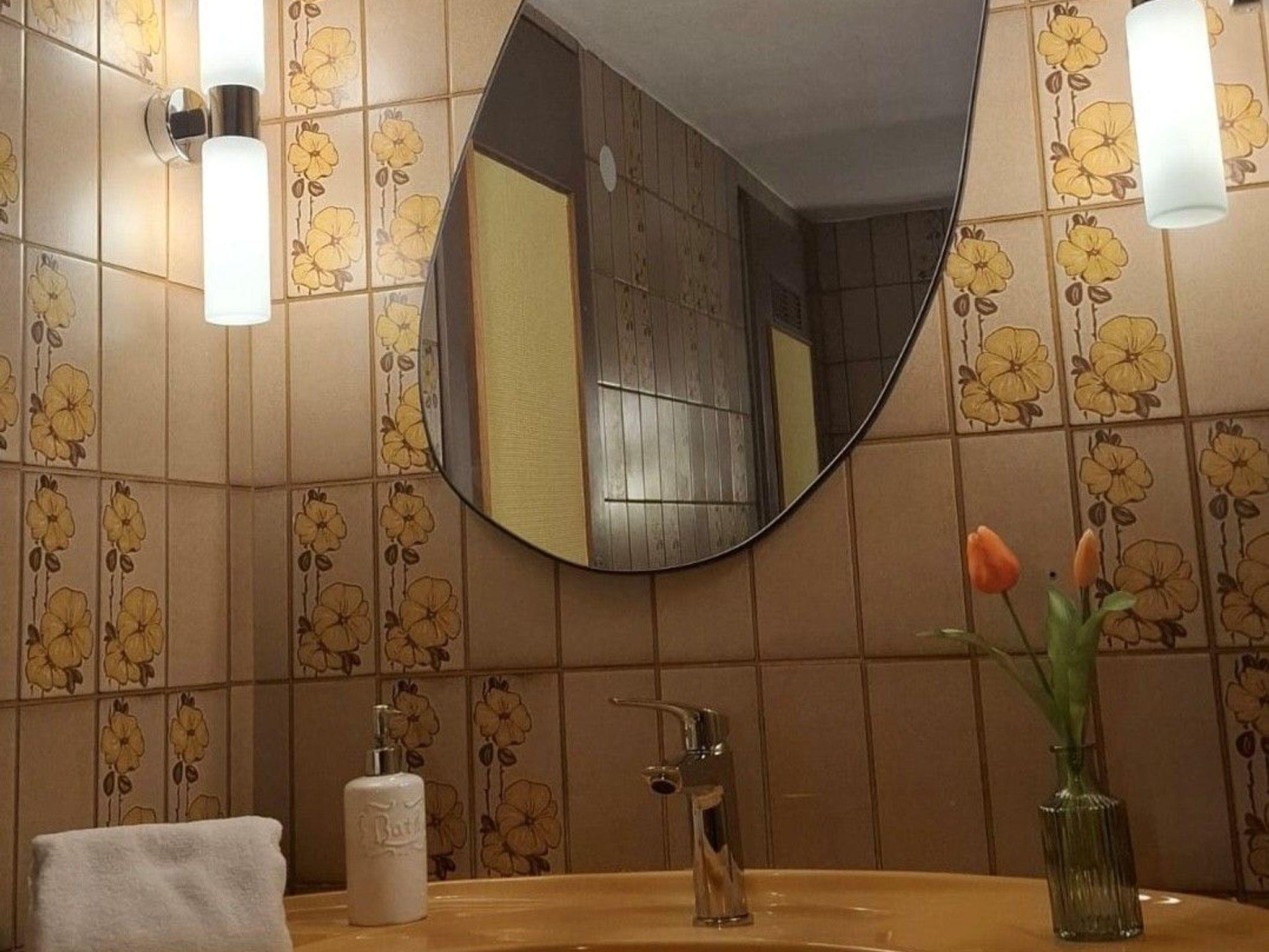 Über eine kleine Treppe gelangen Sie in den unteren Bereich zum modernen Badezimmer mit ebenerdiger Dusche und WC. Ein echtes Plus für Aktivurlauber: Hier stehen Ihnen auch Waschmaschine und Trockner zur Verfügung (Handtücher und Föhn liegen bereit). Ihr besonderer Vorteil: Dank der direkten Hotelanbindung können Sie Spiele, Bücher oder Babyausstattung (Hochstuhl/Reisebett) ganz bequem im angrenzenden Hotel erfragen. Kostenloses WLAN rundet Ihr unbeschwertes Dolce Vita im Teutoburger Wald perfekt ab!