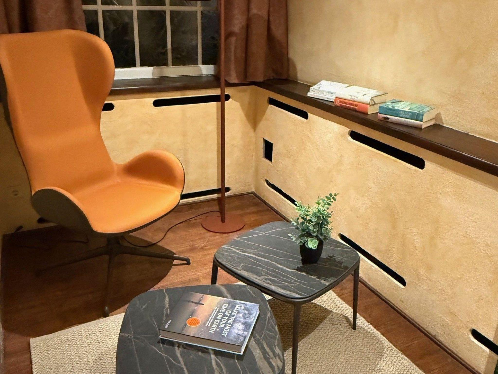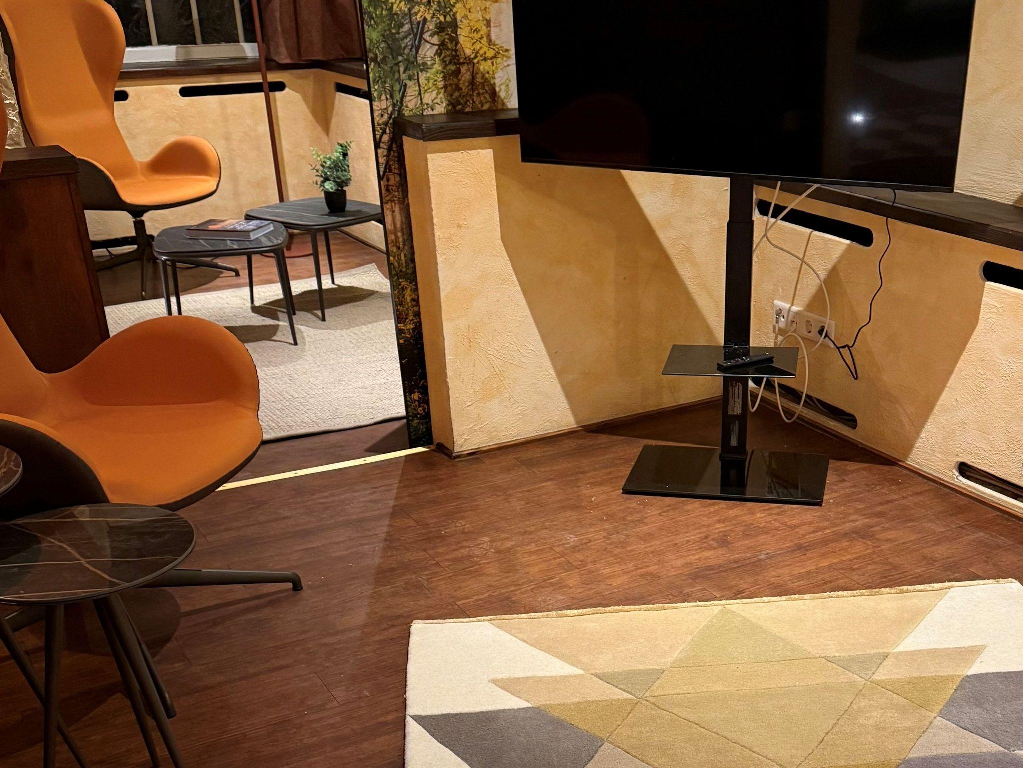 Auf beeindruckenden 120 Quadratmetern erwartet Sie ein offenes Raumwunder, das historischen Charme mit modernem Komfort vereint. Das absolute Herzstück dieses Studio-Apartments ist die original erhaltene Restaurant-Theke. Wo früher Espresso serviert wurde, kochen Sie heute entspannt in der vollausgestatteten, offenen Küche (inkl. Spülmaschine, Backofen und Mikrowelle) und genießen den Duft Ihres frischen Urlaubskaffees.
