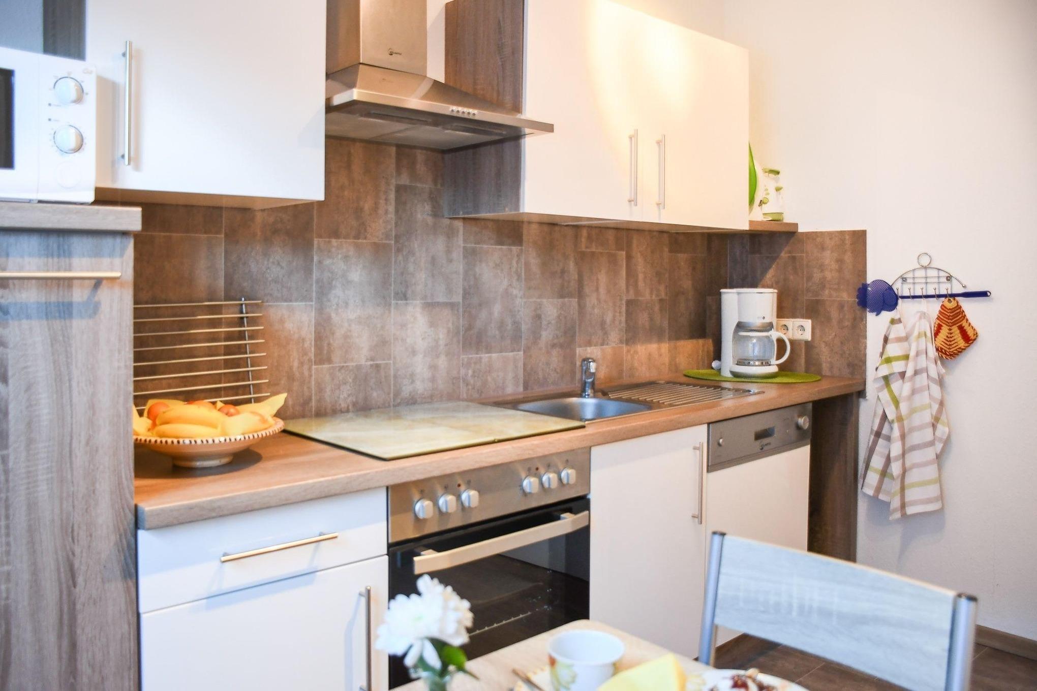 Sehr schön eingerichtet, Einbauküche mit allen elektr. Geräten, schönes ruhiges Schlafzimmer, modern und gemütlich eingerichtetes Wohnzimmer, neus Komfort Bad mit Whirlpool u.Dusche, zusätzliche Schlafgelegenheit können wir anbieten, ein kleines Kinder-Spielzimmer ist ebenso vorhanden,wie Kinderbett ein Hochstuhl und Spielsachen , Bettwäsche, Handtücher stellen wir kostenfrei zur Verfügung. Waschmaschine u. Trockner können geg. Gebühr benutzt werden. Eine Wohnung um sich rundum wohlzufühlen.