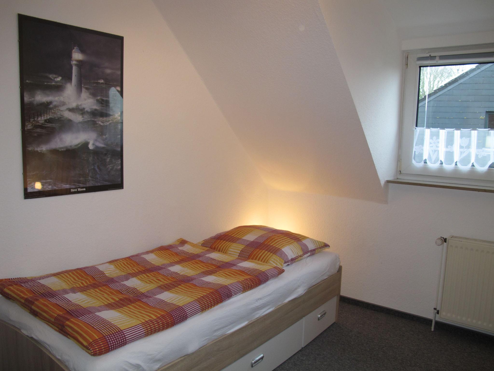 "Ferienhaus Sonne", 4-room semi-detached house 112 m2 on 2 levels. Cosy furnishings: living/dining room with satellite TV. Exit to the terrace. Kitchen (oven, dishwasher, 4 ceramic glass hob hotplates, toaster, kettle, microwave, freezer, electric coffee machine). Sep. WC. Upper floor: 1 double bedroom with sloping ceilings. 1 room with sloping ceilings with 1 bed and 1 double bed. 1 room with sloping ceilings with 2 beds. Bath/shower/WC. Lawn. Terrace furniture. Facilities: washing machine, children's high chair, baby cot. Internet (WiFi, free). Parking (roofed). Please note: non-smokers only. Smoke alarm.