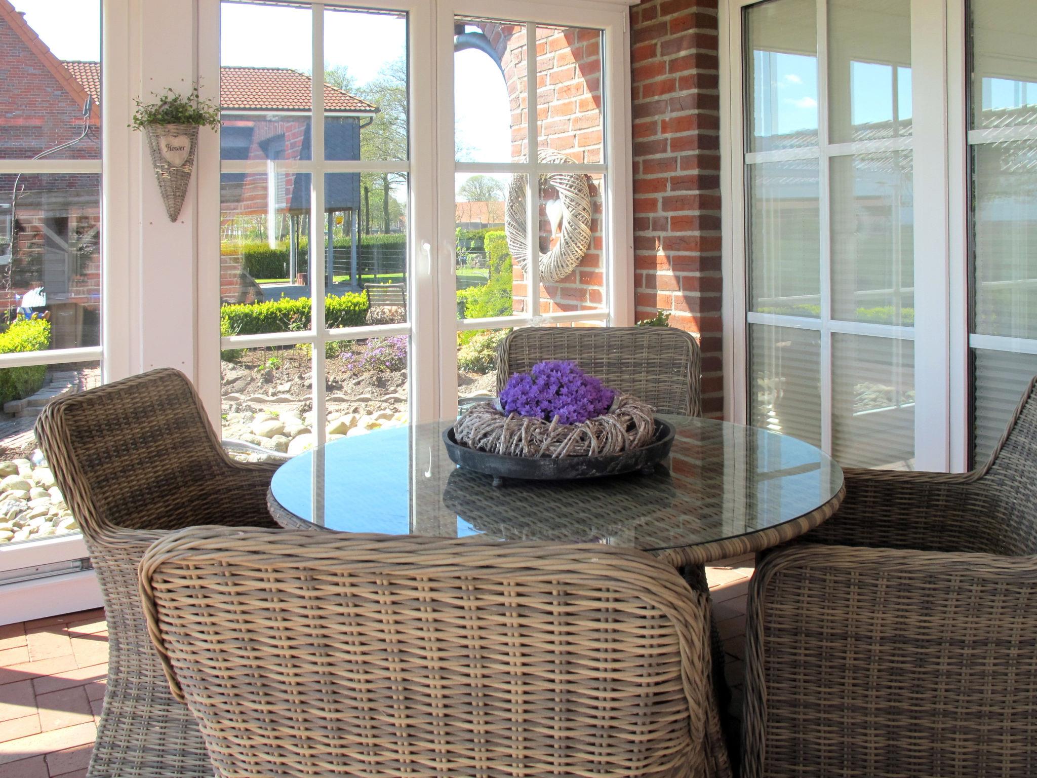 Wiarden 6 km from Horumersiel: 2-family house "Rosenboom". On the outskirts, 24 km from the centre of Wilhelmshaven, 6 km from the sea, 8 km from the lake. Private: property 700 m2 (fenced), well-kept garden with lawn and wildlife garden. Terrace, garden furniture, barbecue. In the house: storage room for bicycles, central heating system. Parking at the house. Supermarket 3 km, bus stop 100 m, railway station "Jever" 16 km, sandy beach "Hooksiel" 6 km, grass beach "Horumersiel" 6 km, outdoor swimming pool 6 km, indoor swimming pool 6 km. Marina 6 km. Storage room for bicycles is lockable.