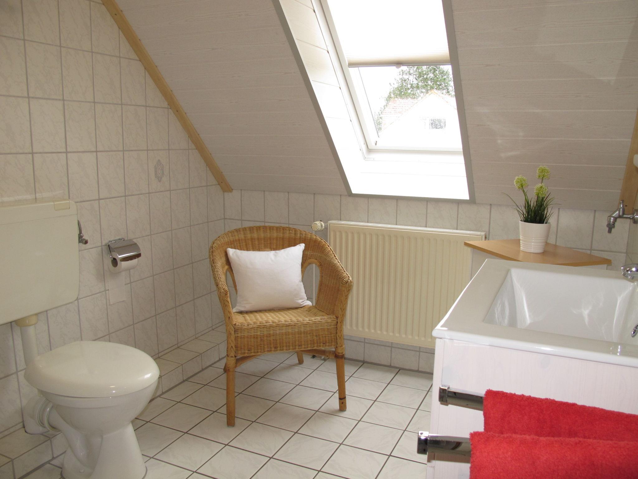 3-room apartment 50 m2 on 2 levels on 1st floor. Renovated in 2019: upper floor: 1 room with sloping ceilings with 1 double bed. Open kitchen (oven, 4 ceramic glass hob hotplates, toaster, kettle, electric coffee machine) with dining table and satellite TV (flat screen), DVD. Shower/WC. Top floor: small living room with sloping ceilings with satellite TV (flat screen). Facilities: Internet (WiFi, free). Please note: non-smokers only. Smoke alarm.