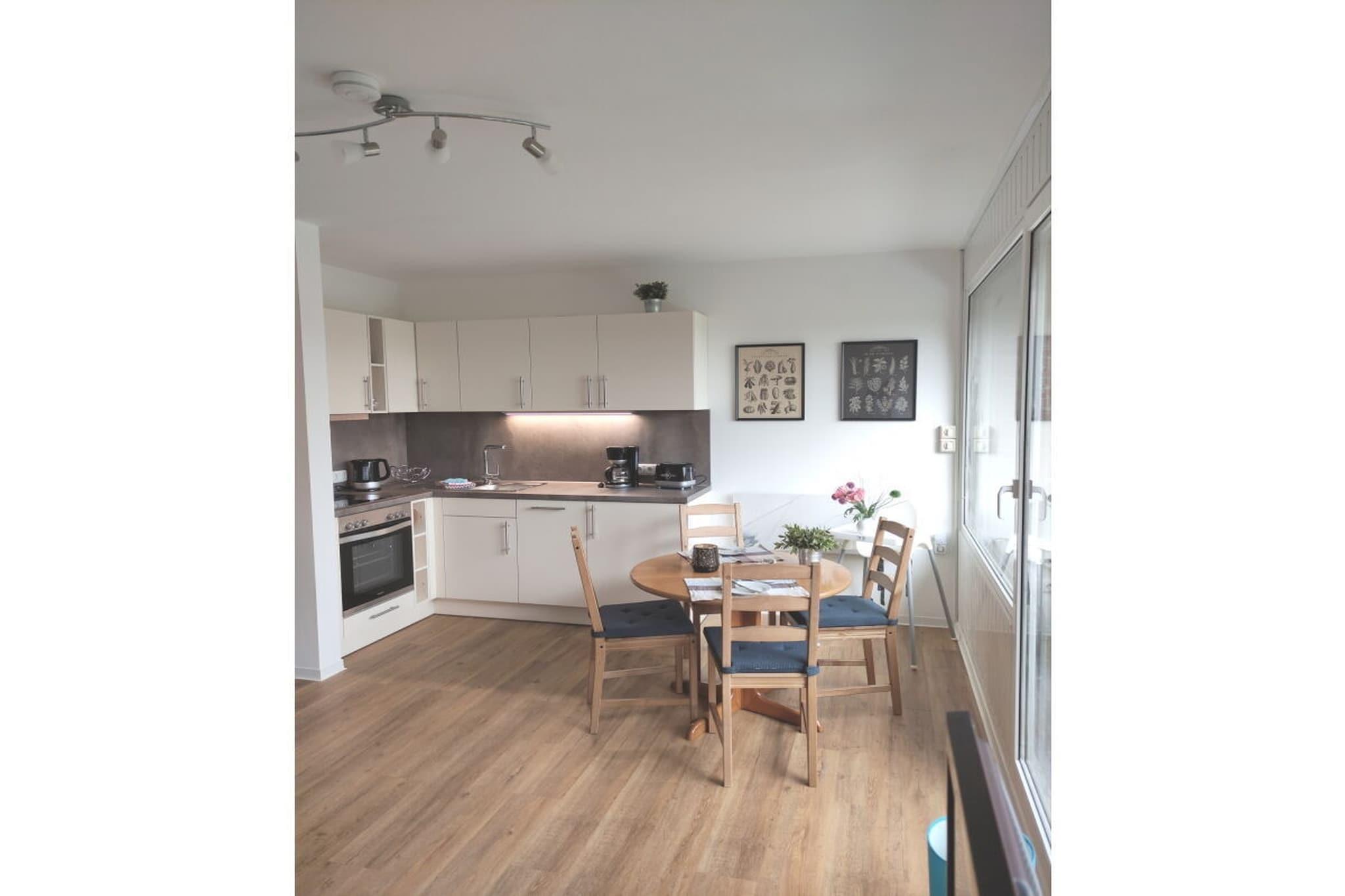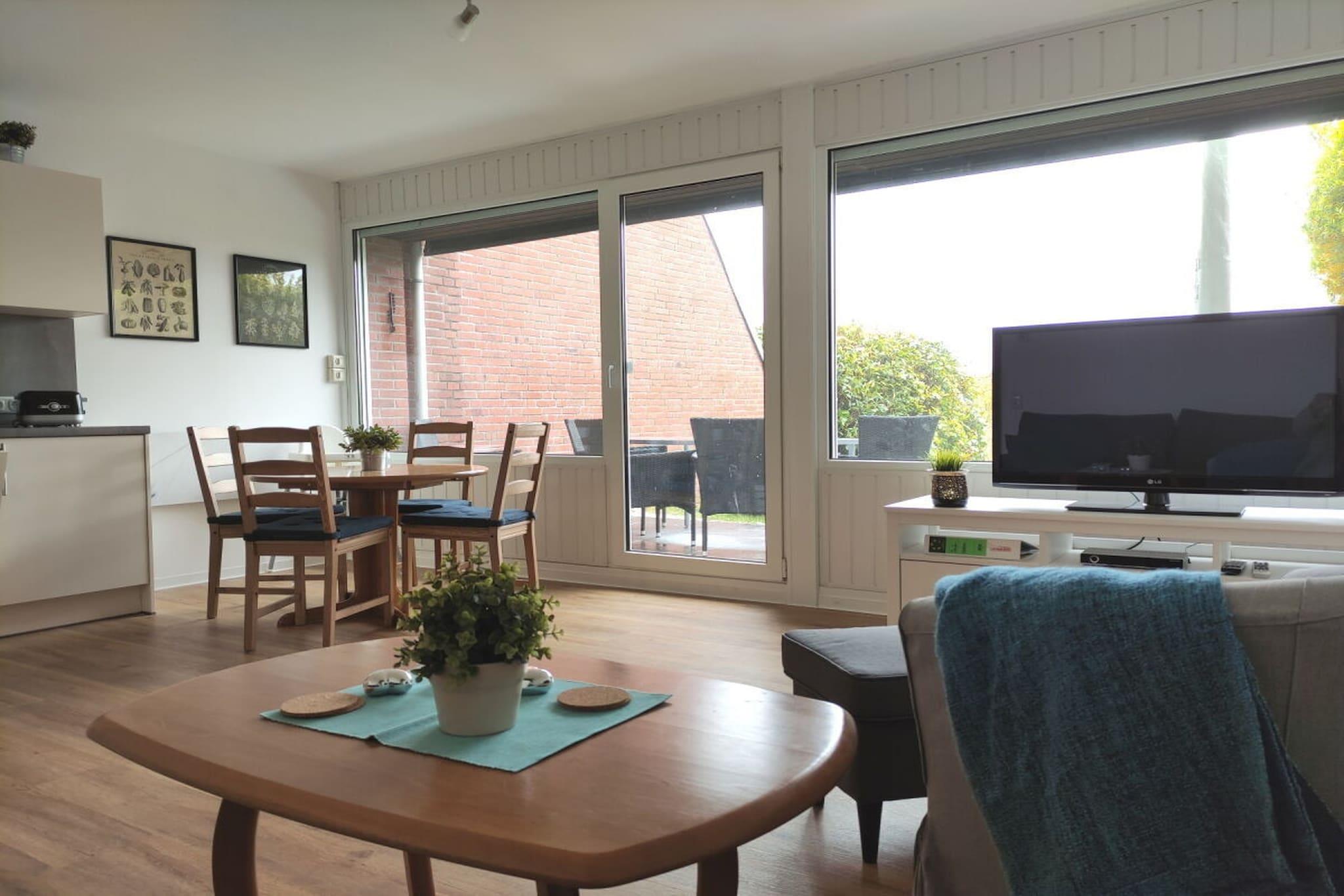 Gemütliche, schön eingerichtete Wohnung mit einem Schlafzimmer, Wohnzimmer mit Essecke und Schlafcouch sowie Duschbad. Alles wurde 2021 komplett erneuert. Schöne Terrasse mit Blick auf eine riesige Wiese. Sonnenschirm und Grill stehen Ihnen bereit. Umfangreiche Ausstattung mit WLAN, Fernseher, Backofen, Ceranfeld, Spülmaschine, Kaffeemaschine, Kühlschrank inkl. Gefrierfach, Toaster, etc. Die Wohnung liegt im Erdgeschoss im Nordsee-Heilbad Horumersiel. Das Meer ist nur 400 m (Luftlinie) entfernt. Fußläufig erreichen Sie die Dorfmitte Horumersiel nach etwa 1,2 km, hier gibt es mehrere Restaurants und Eis(cafés). Das Strandbad Schillig ist fußläufig ca. 2 km entfernt. Zum großen Edeka-Markt sind es etwa 1,5 km. Ein PKW-Stellplatz befindet sich direkt vor der Haustür. Abstellraum für mitgebrachte Räder ist auch vorhanden.